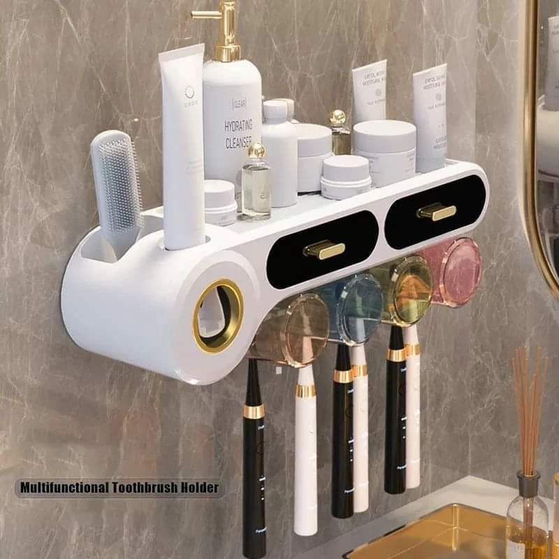 4Cups Toothbrush Holder with 2 Separate Drawers