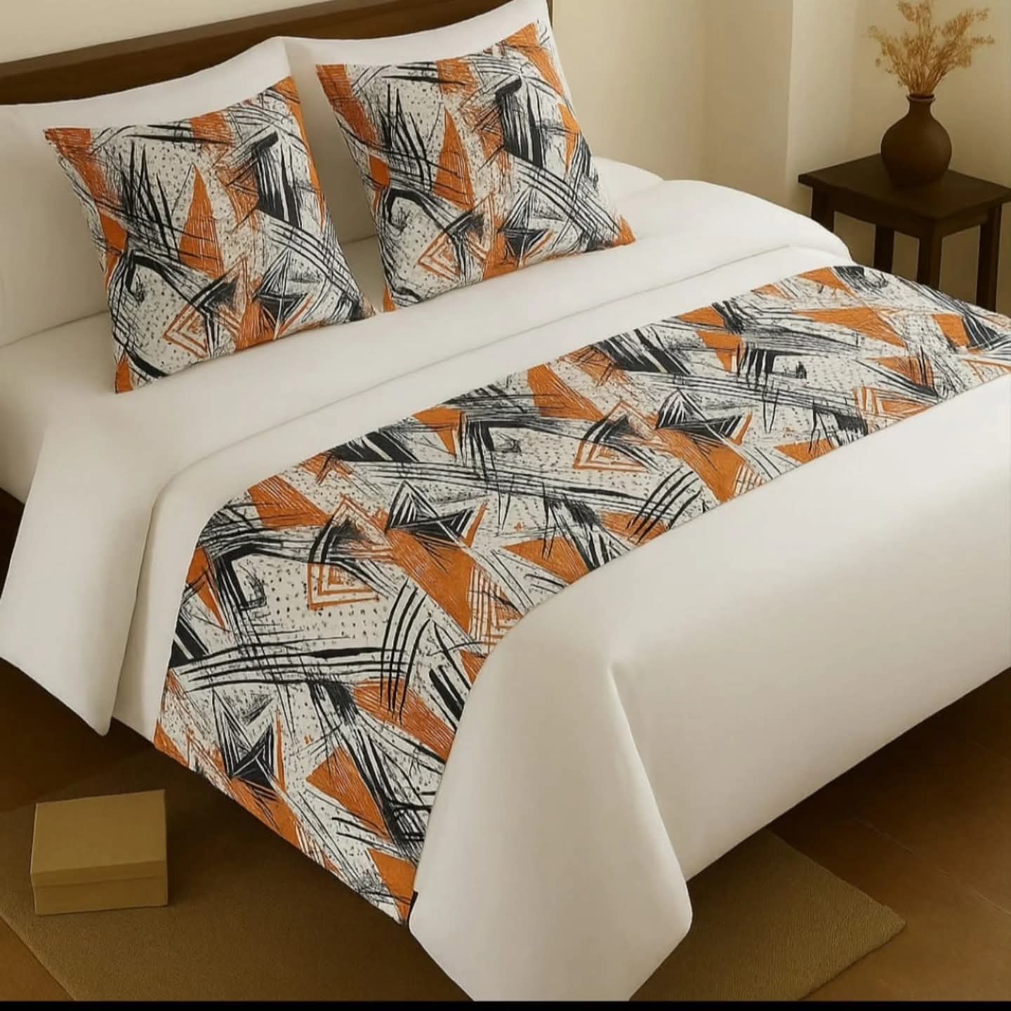 Includes 1 bed runner and 2 throw pillowcases