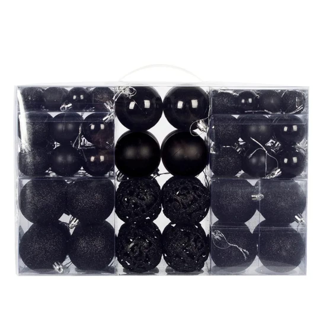 Complete festive ornament collection featuring 6cm, 4cm, and 3cm decorative balls.