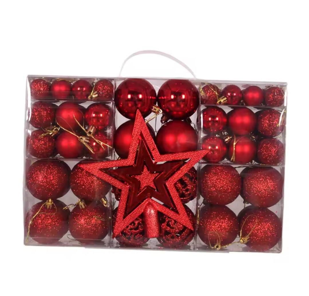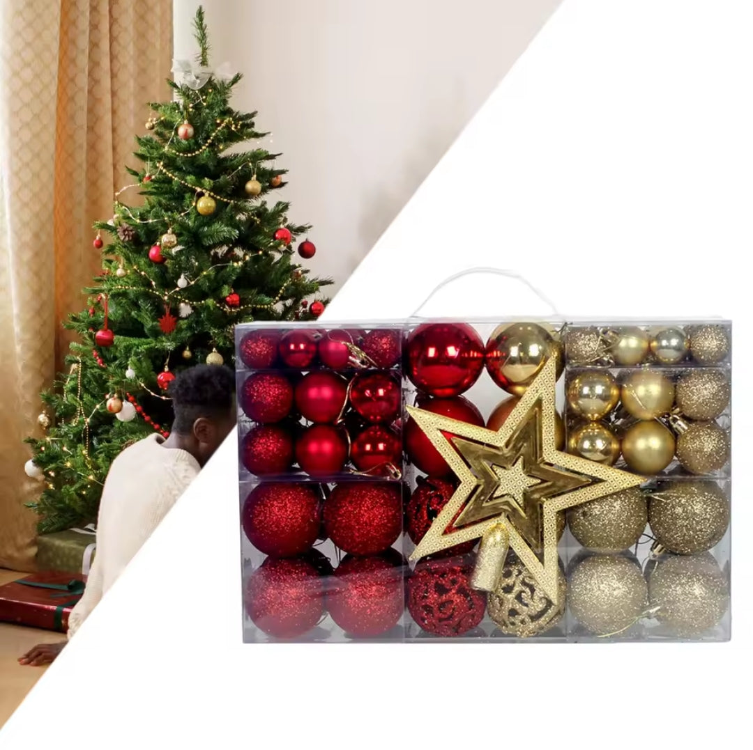 Add a festive touch to your Christmas tree with this complete 101-piece decoration set.