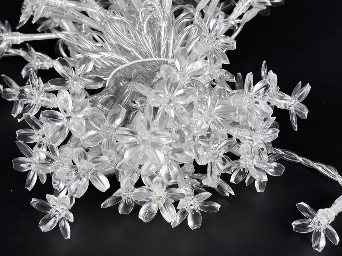 Brighten your festive décor with these 10-meter flower-shaped LED fairy lights, perfect for both indoor and outdoor use.