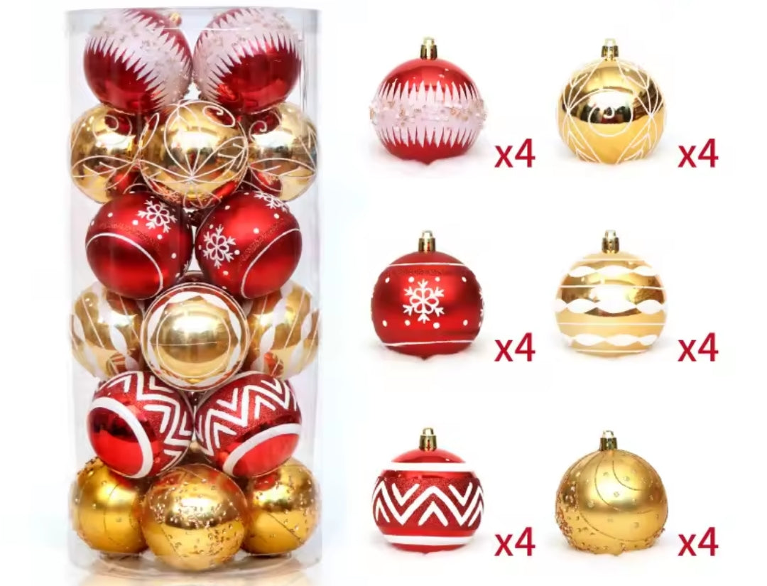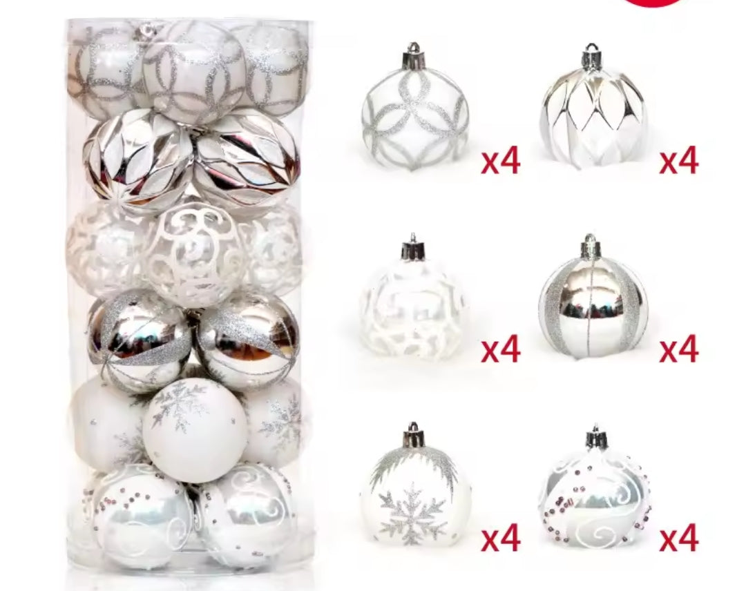 Multicoloured 24pcs Christmas balls decor set, perfect for adding festive charm to your Christmas tree and holiday decorations.