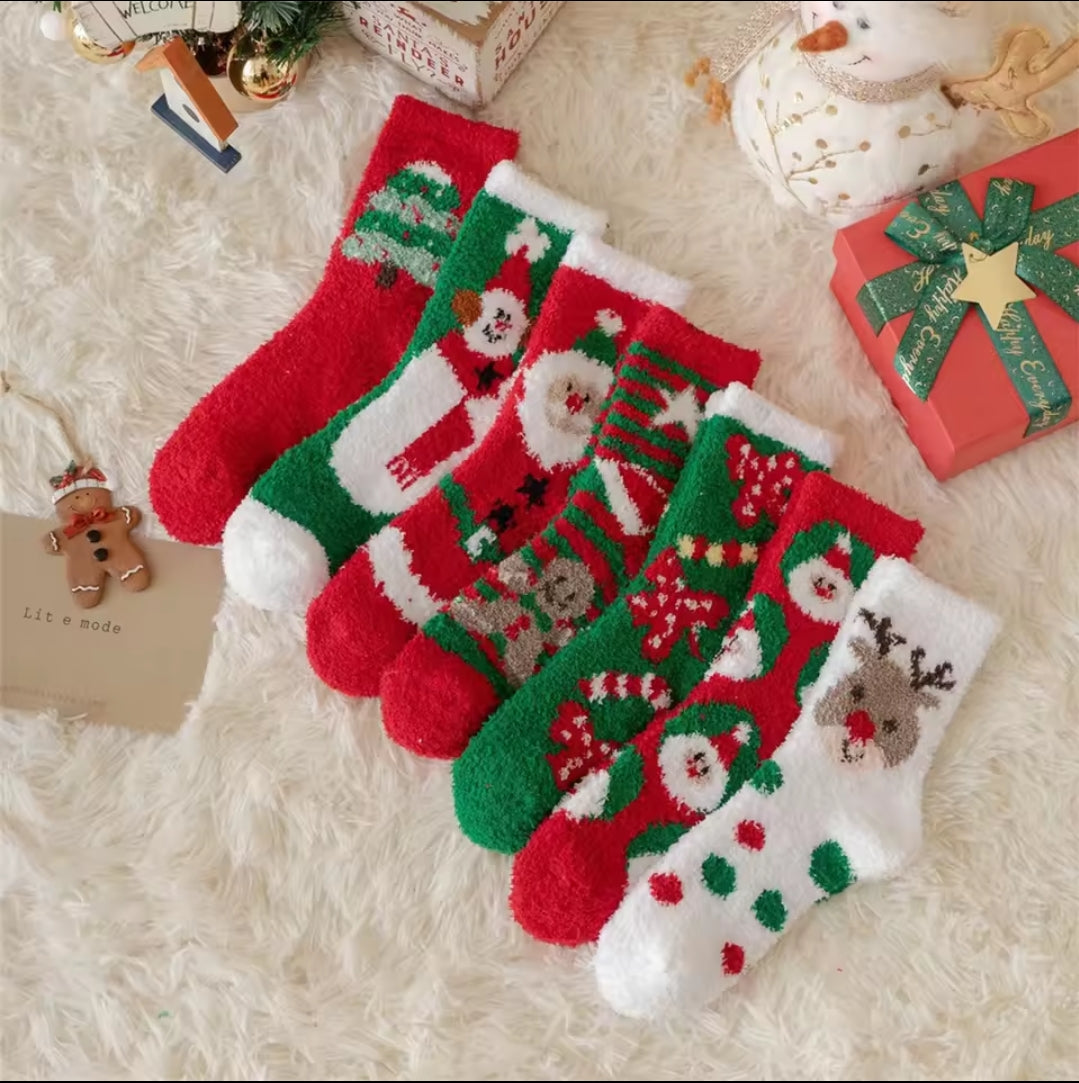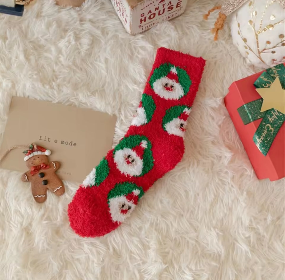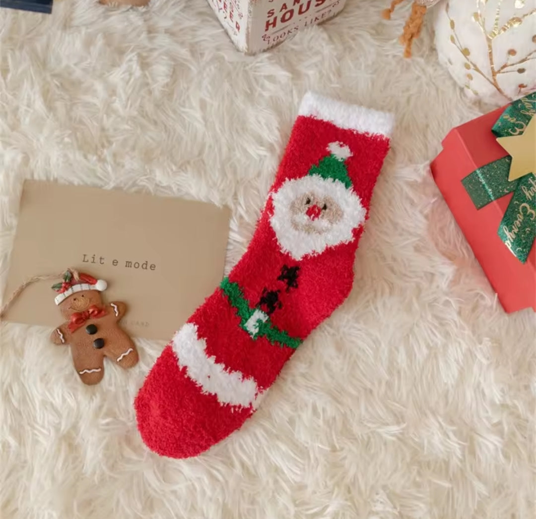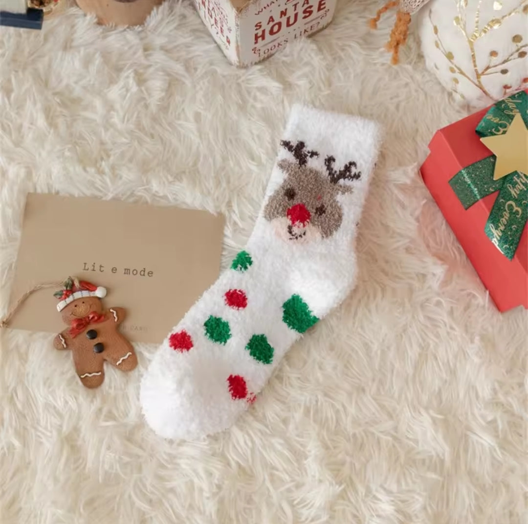 Stay cozy this festive season with our warm and soft coral fleece Christmas socks.