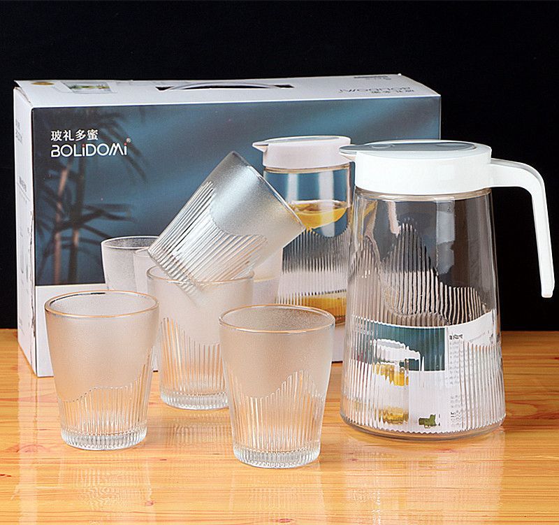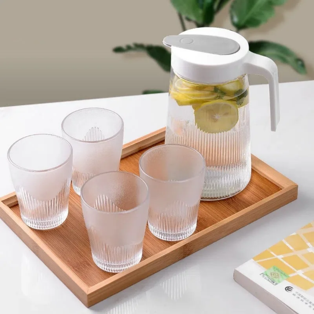 Heat Resistant Glass Cold Water Kettle And Cups Transparent Stripe Coffee Teaware Stainless Steel Lid Jug Kitchen Accessory