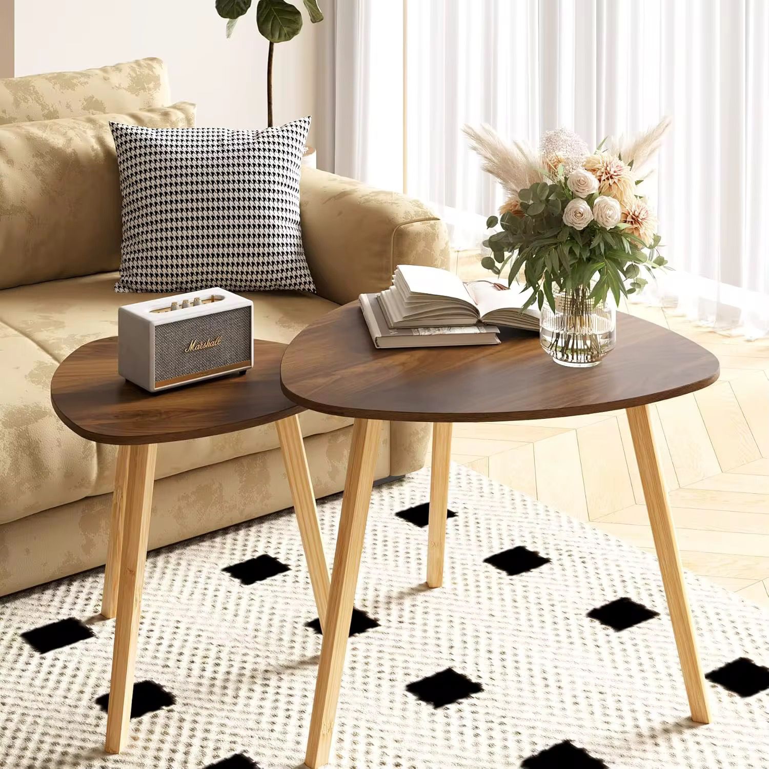 2-piece coffee table set crafted from solid wood. Available in walnut brown and light brown finishes to complement any interior décor.