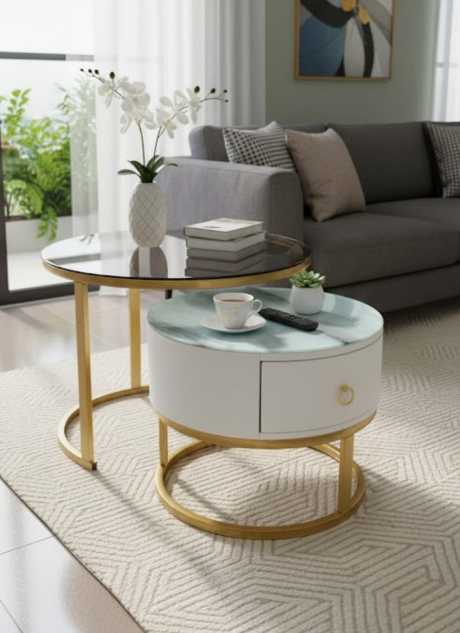 Maximize your living space with this versatile 2-piece nesting table set. Perfect for compact areas, each table slides neatly under the other for easy storage while providing extra surface space when needed. Ideal for your living room, bedroom, or office, these tables combine style and functionality effortlessly.