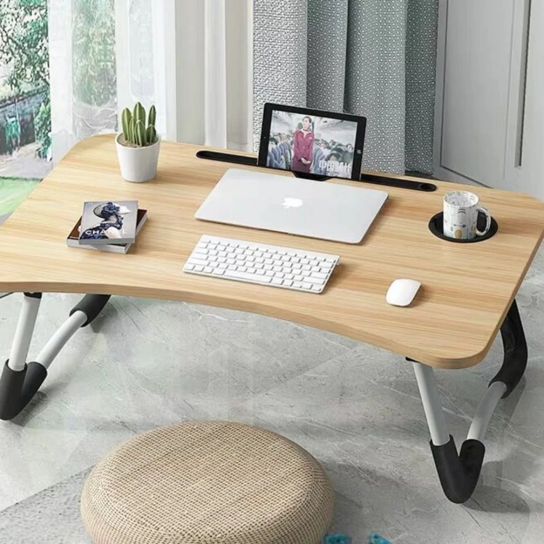 Perfect for kids’ homework, parents’ work, or family breakfast in bed .Foldable legs – easy to store and carry around .Comes fully assembled & neatly packaged, Made from strong MDF material – sturdy and long-lasting.Available in stylish colors: Brown, Black & Beige