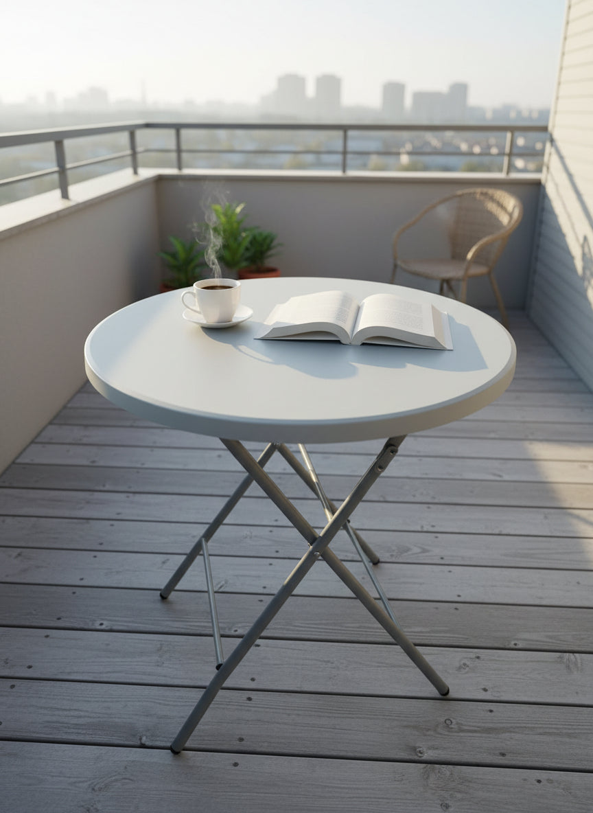 The SN-R80-1 Round Folding Table is a portable and durable table designed for both indoor and outdoor use. Its high-density polyethylene tabletop offers excellent resistance to spills, scratches, and UV exposure, while the powder-coated steel frame provides dependable stability. The foldable leg design allows for easy storage and quick transportation, making it a practical solution for homes, offices, events, and outdoor activities. With an 80 cm diameter, it comfortably seats two to four people and delivers a sturdy, weather-resistant surface suited for a wide range of needs.