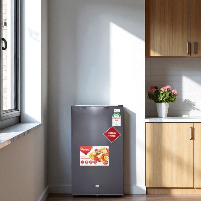 Keep your food fresh and organized with the Ramtons 85L Single Door Direct Cool Fridge RF/334. Designed for convenience and efficiency, this compact refrigerator is perfect for smaller households or limited spaces. It features an internal condenser that ensures even cooling throughout, while the lock and key provide added security for your perishables. The adjustable transparent glass shelf, freezer compartment, and vegetable crisper offer flexible storage options. With a sleek silver finish and recessed handle, this fridge blends modern design with everyday practicality.