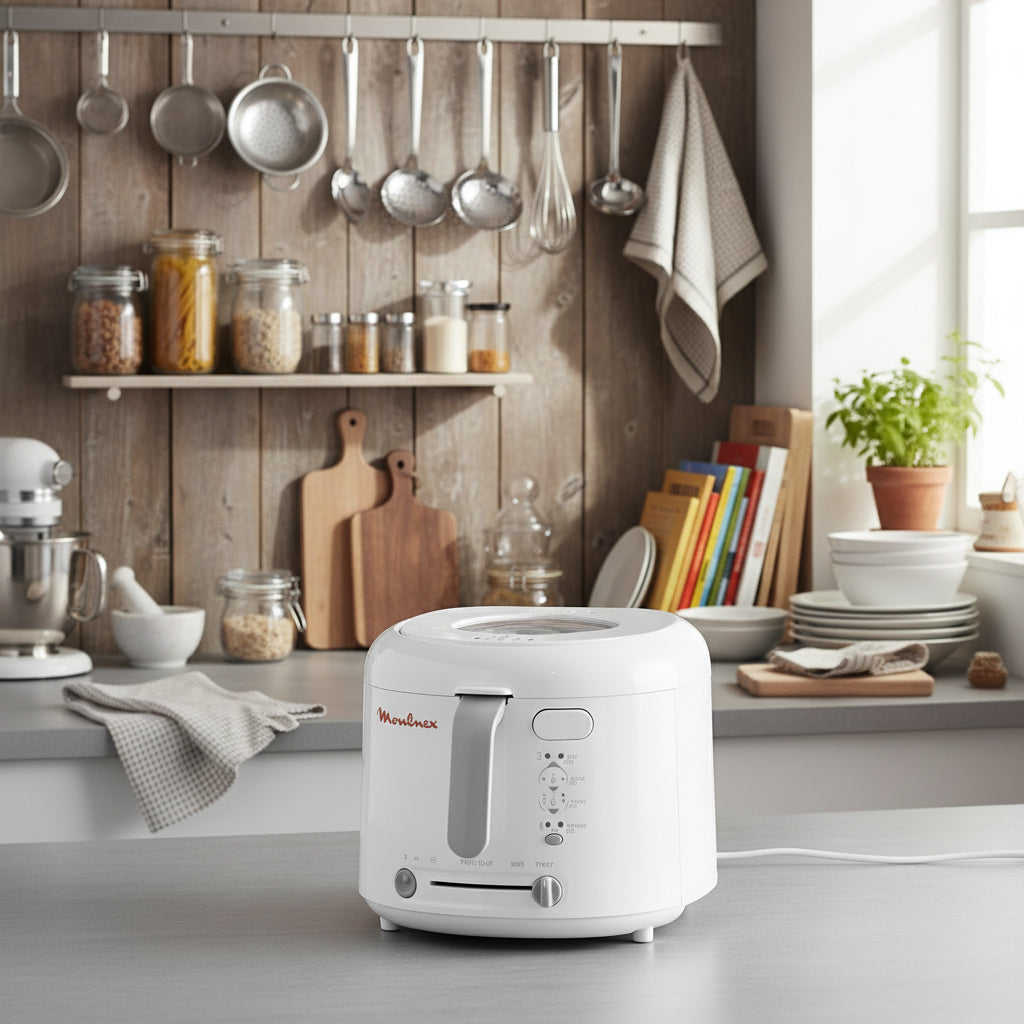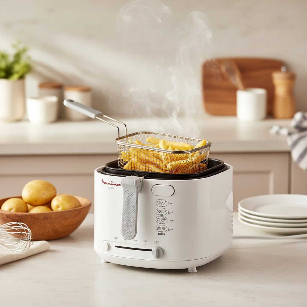 Enjoy crispy, delicious meals at home with the Moulinex AF203127 Deep Fryer. Designed with a powerful 1470W heating system and a generous 1kg capacity, this fryer is perfect for preparing fries, chicken, samosas, and snacks for up to four people. Its compact design, foldable handle, and large viewing window make frying easier, safer, and more convenient.
