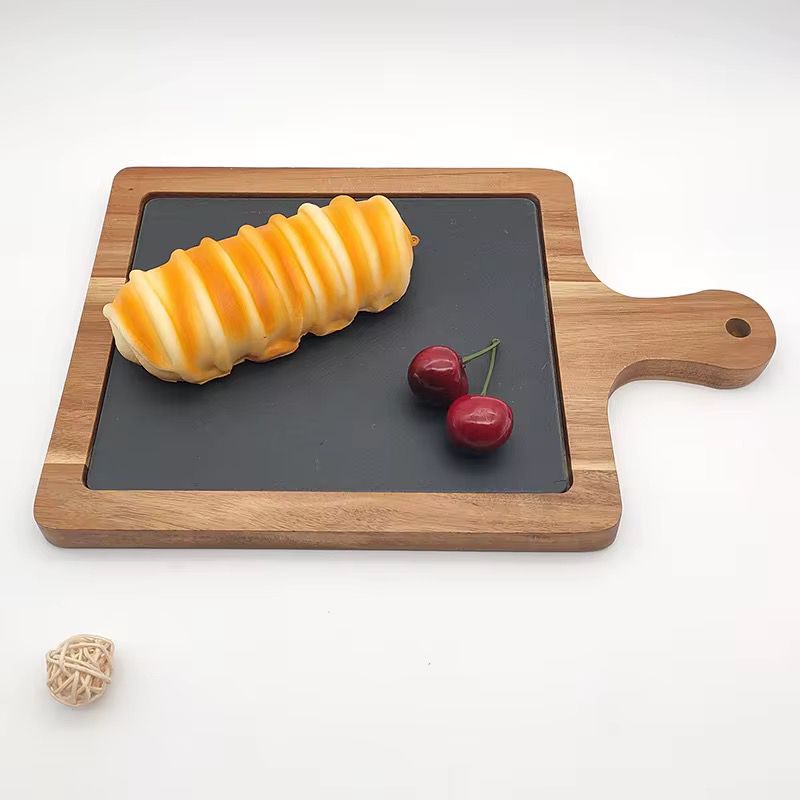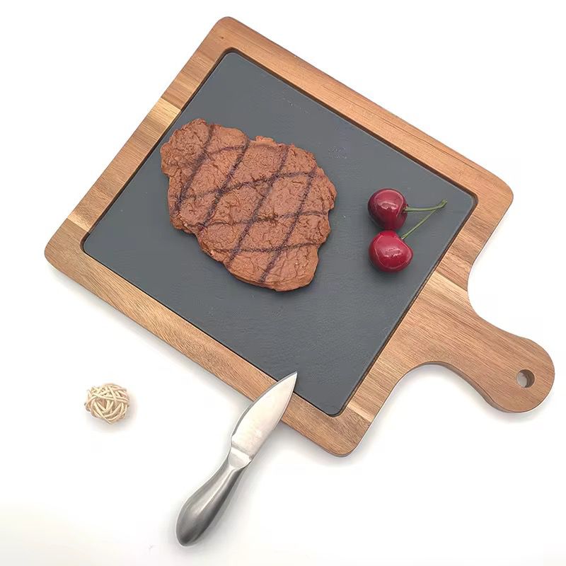 Designed in a stylish 40×28cm square shape, this plate combines durable bamboo with sleek slate for a modern serving look. Perfect for presenting cheese, snacks, or desserts, it’s ideal for both home dining and professional food displays. Easy to clean, eco-friendly, and built to last, this serving plate enhances any dining experience.