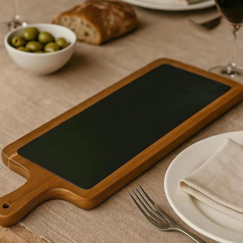 Crafted from natural bamboo and durable slate, it’s perfect for serving sushi, cheese, desserts, or appetizers with a modern touch. Ideal for home dining, events, or restaurant presentations, this eco-friendly plate combines functionality with elegant design for a beautiful food display.