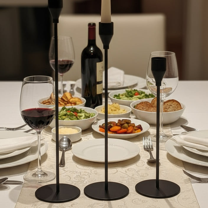 Add timeless elegance to your space with this 3-piece candle holder set, available in stunning silver and black finishes. Crafted with precision and durability, these candle holders enhance the beauty of any room, whether used as a centerpiece or decorative accent. Their sleek design complements modern, classic, or minimalist interiors, making them perfect for both everyday use and special occasions.