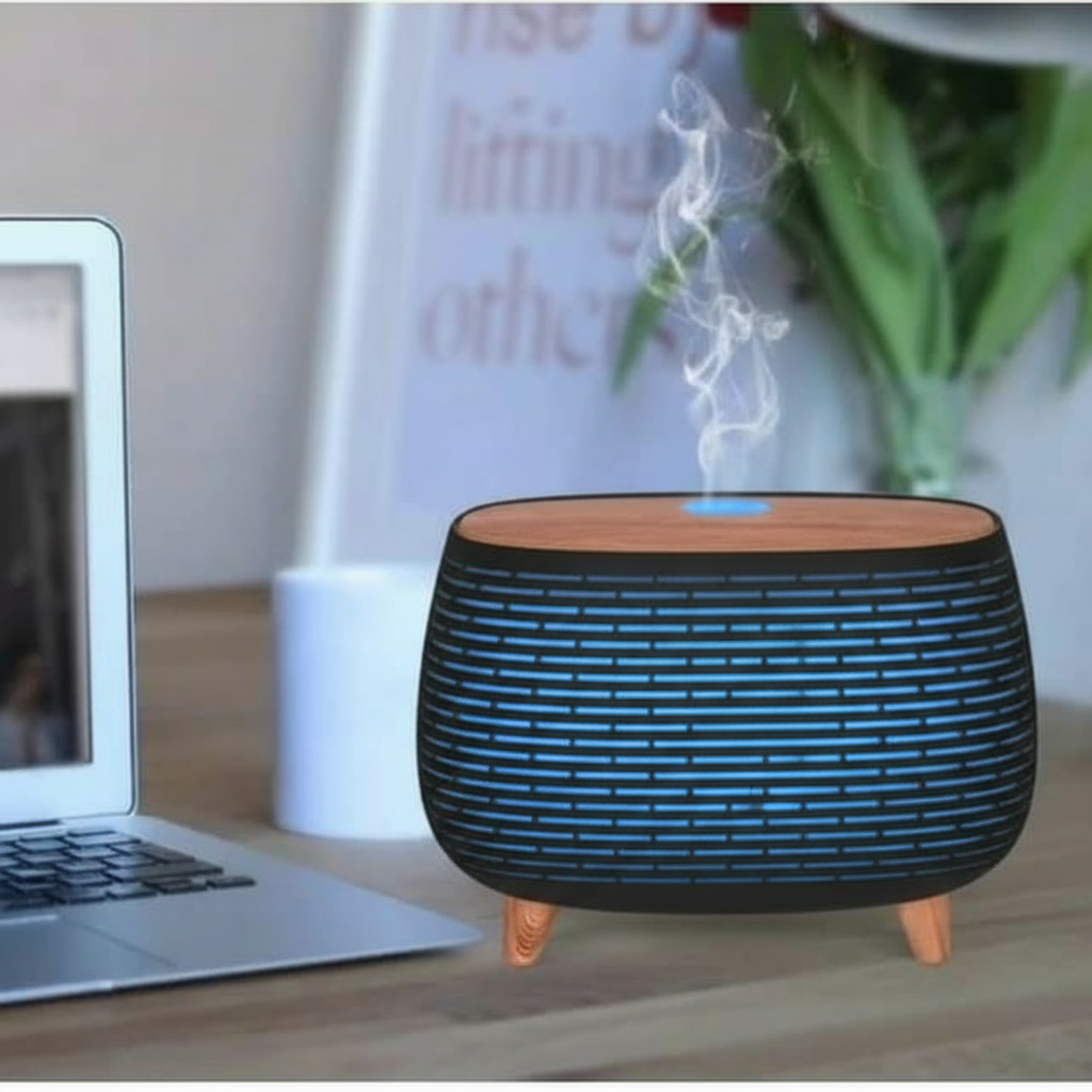 Enhance your home or office environment with this 7-Color Wood Grain Ultrasonic Aromatherapy Diffuser. With a 400ml capacity, it can also function as a soothing night lamp. Compatible with essential oils and featuring remote control operation, this diffuser combines style, convenience, and aromatherapy benefits in one sleek design. Available in white and black, it fits perfectly in any space.