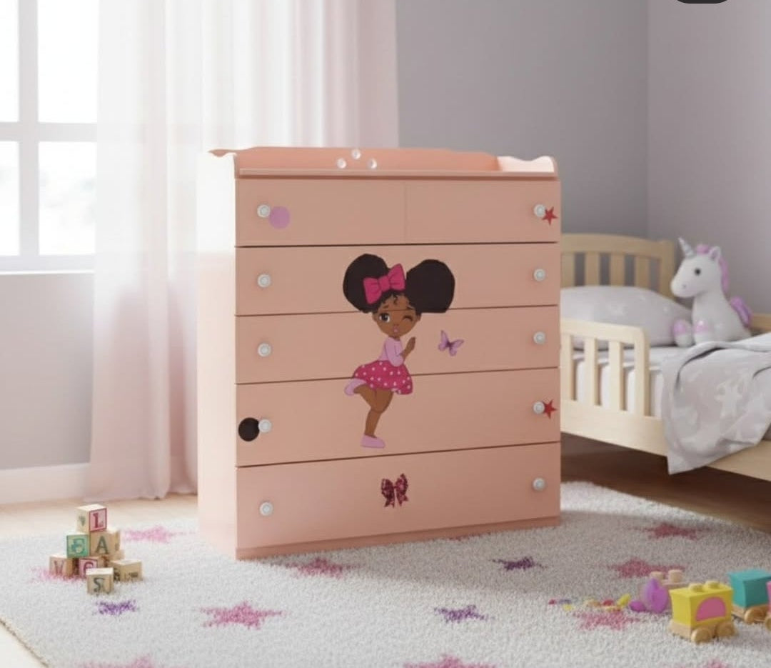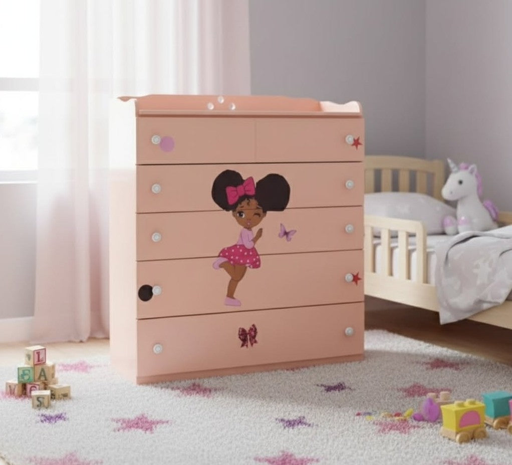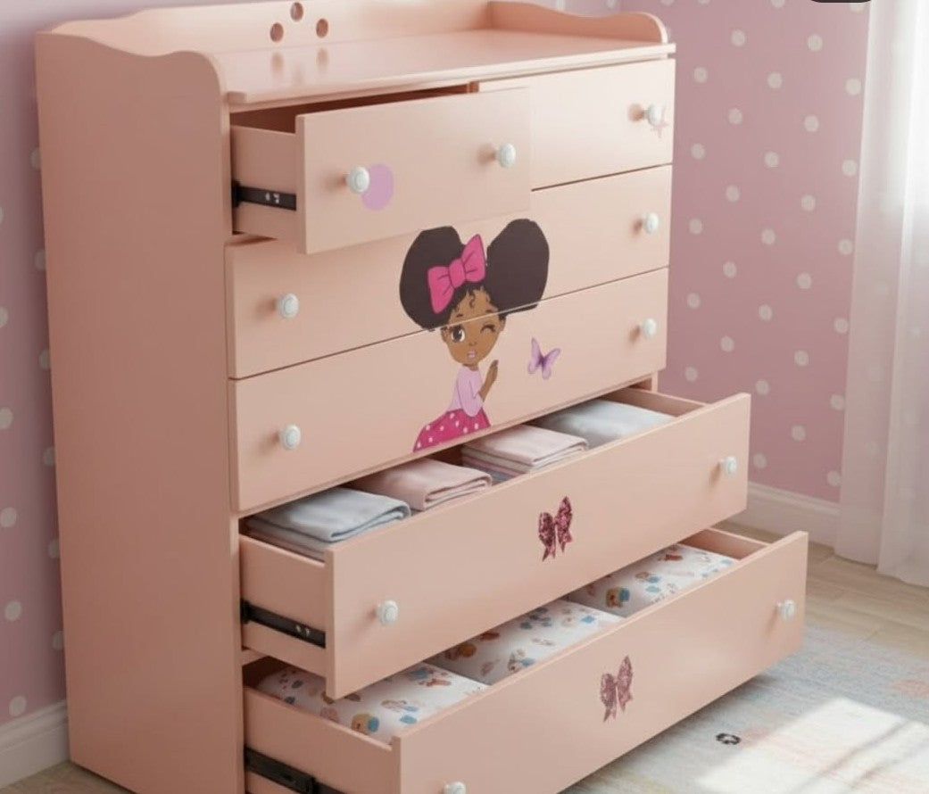 This Chest of Drawers is designed to help keep kids’ clothes, toys, and accessories neatly organized while adding style to any bedroom or playroom. Featuring four spacious drawers with smooth sliding mechanisms, it offers easy access for little hands. Built to last with sturdy materials, it combines practicality and durability, making tidying up a fun and stress-free task for the whole family.