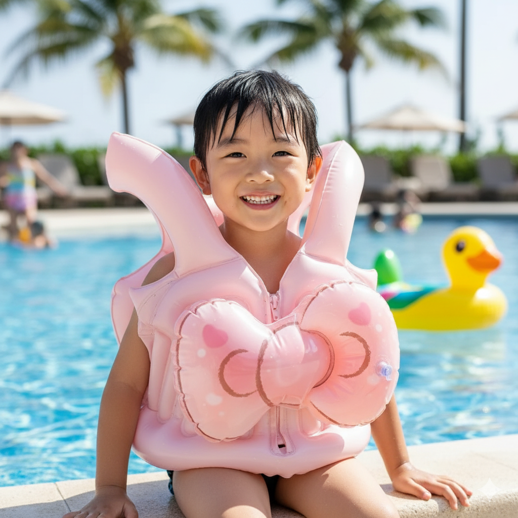 Helps little swimmers stay safe and confident in the water.Comfortable, lightweight, and easy to wear.Perfect for swimming lessons, beach trips, or pool fun. Available in cute, colorful designs as shown