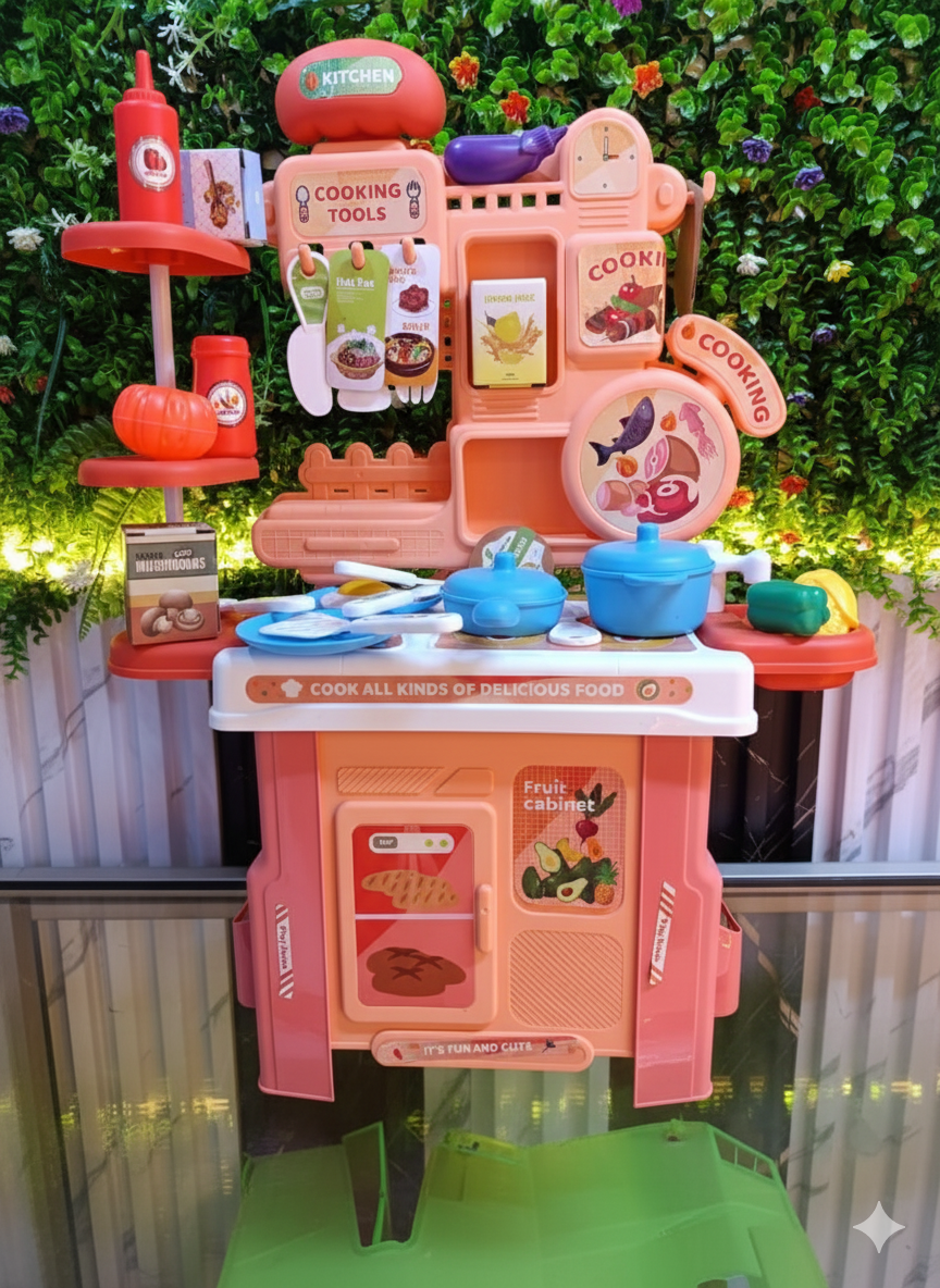 This 46-piece kitchen play set includes utensils, cookware, and accessories for imaginative cooking play. Designed with safe and durable materials, it encourages creativity, role-playing, and practical life skills. Perfect for solo play or family interaction.