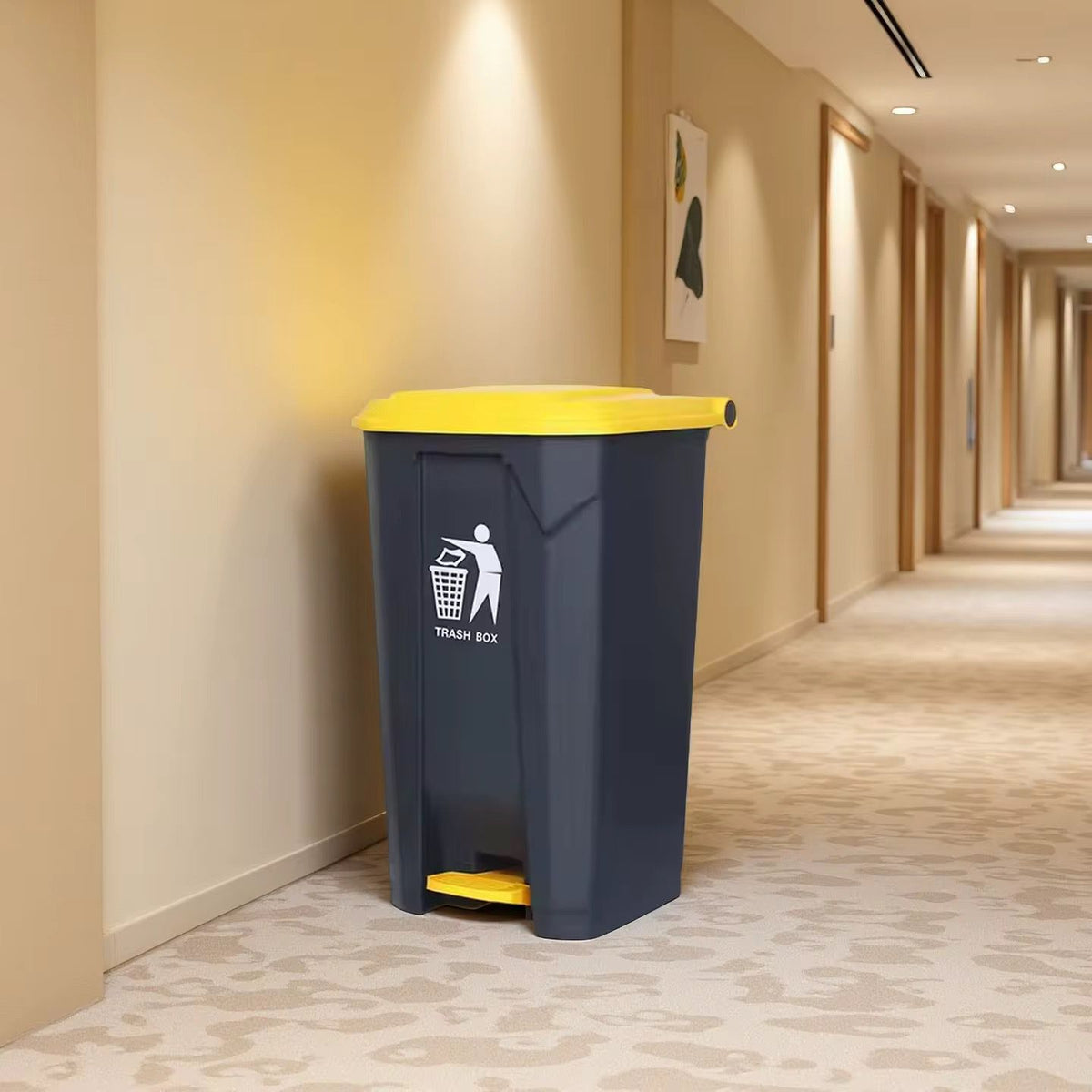 Maintain a clean and hygienic environment with this black foot pedal bin with yellow accents, made from strong, durable plastic. Designed for hands-free operation, it’s ideal for homes, offices, hotels, and commercial spaces. Easy to clean and built to last, this pedal bin combines practicality, hygiene, and a stylish design for everyday waste management.