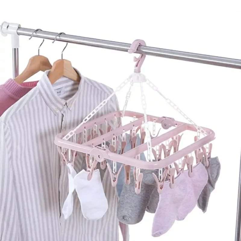 Multi-clip foldable clip hanger perfect for drying inner wears and socks