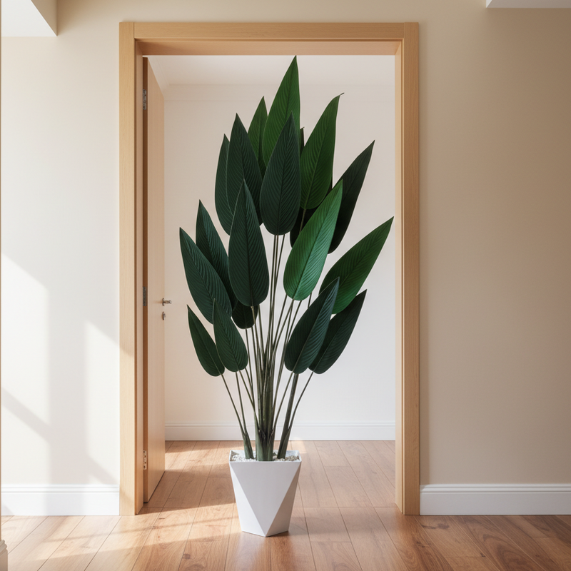 Artificial Bird of Paradise Plant with Plastic Vase and Pebbles