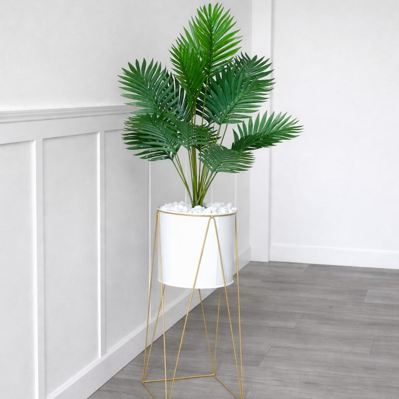Artificial Areca Palm tree with Pebbles and a Metallic planter