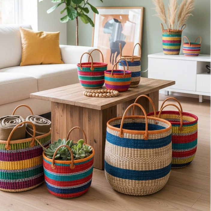 Celebrate authentic African artistry with these beautifully handwoven baskets. Crafted by skilled artisans using natural materials, each basket features intricate patterns and a durable build. Perfect for home organization, storage, or decoration, they blend functionality with traditional charm.