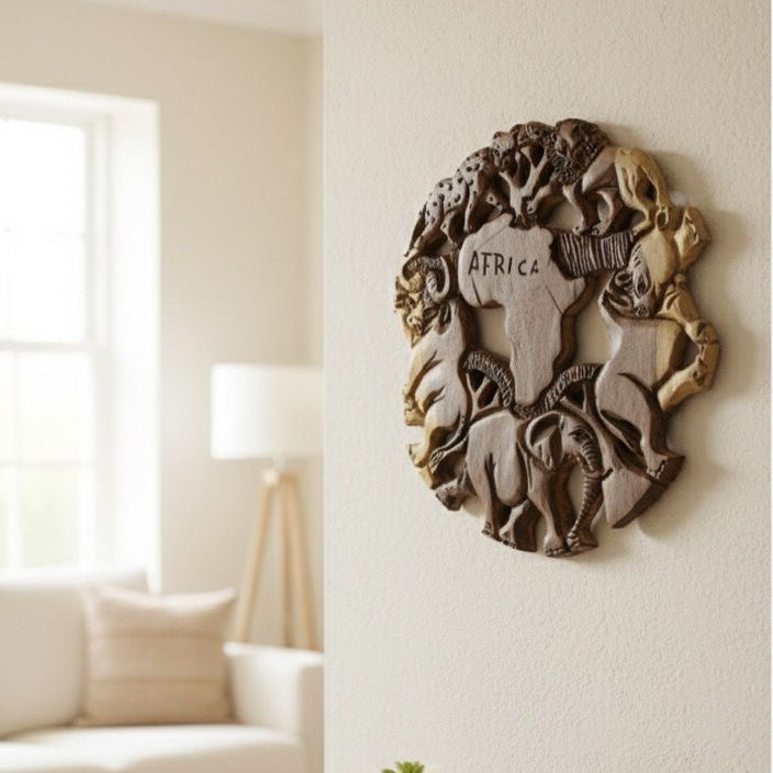 Hand-Carved Wooden African Wall Art Piece – 34cm Diameter