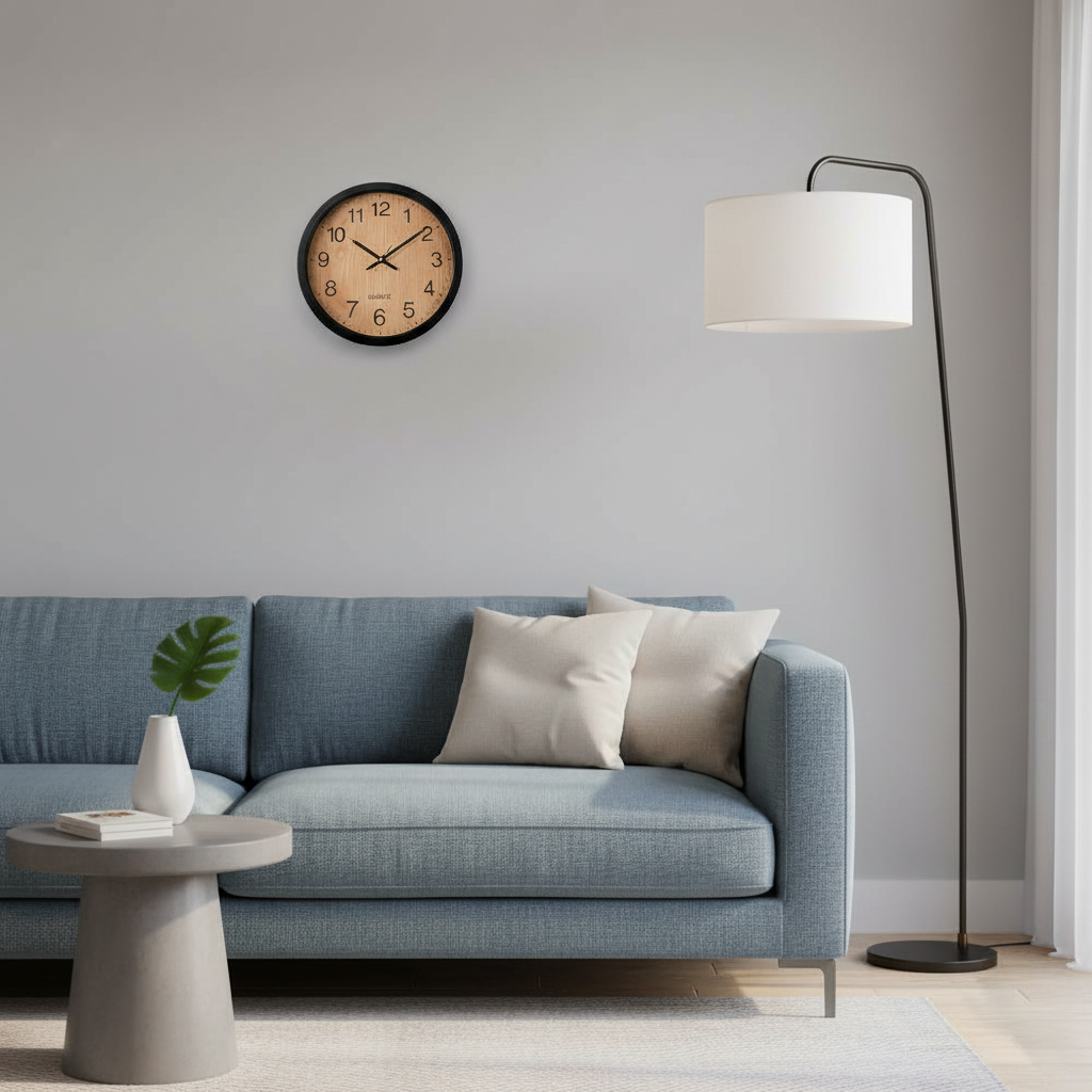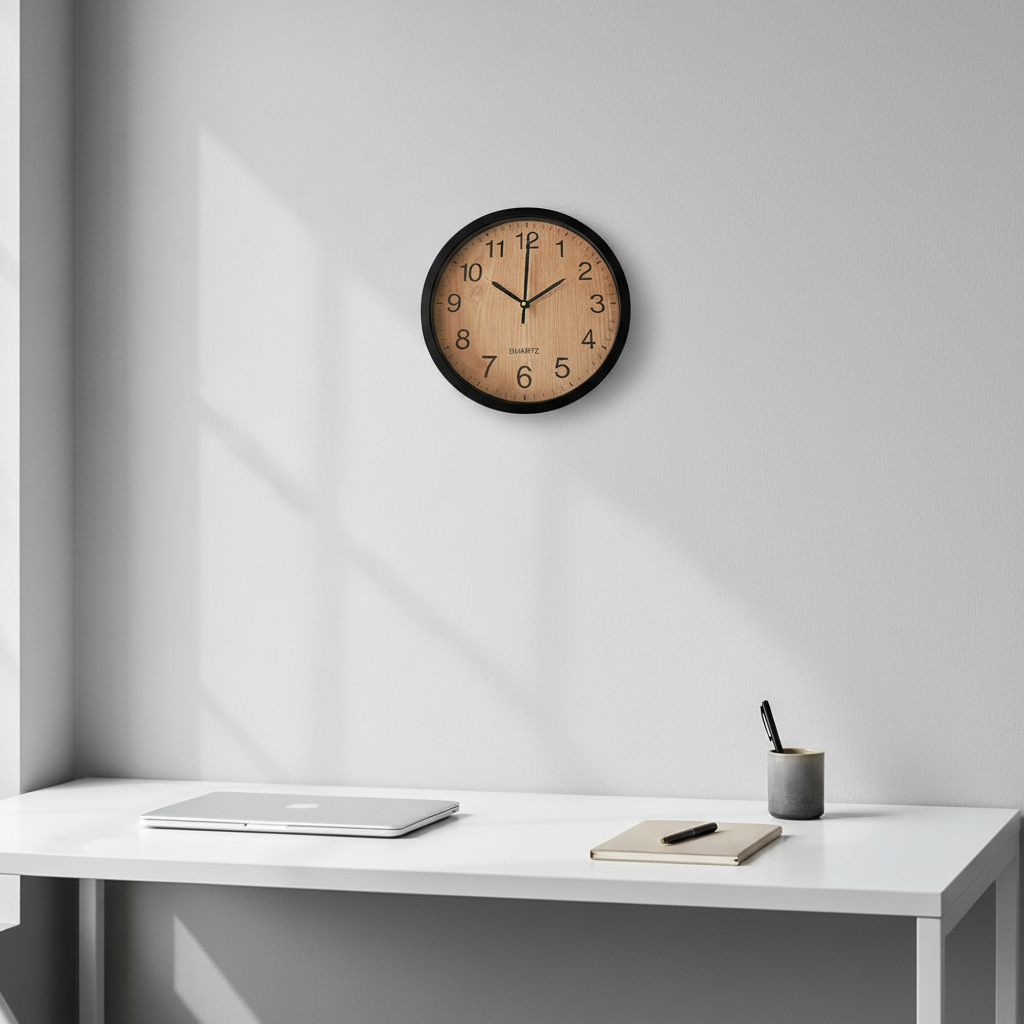 Add a subtle natural touch to your space with this 30cm Black Wall Clock featuring a light woodgrain face. Designed for simplicity and clarity, it combines bold black numerals with a sleek black frame for a clean, modern look. The easy-to-read dial ensures quick visibility, while the silent quartz movement provides accurate timekeeping without noise. Lightweight and easy to hang, this clock fits seamlessly into offices, bedrooms, kitchens, or classrooms.