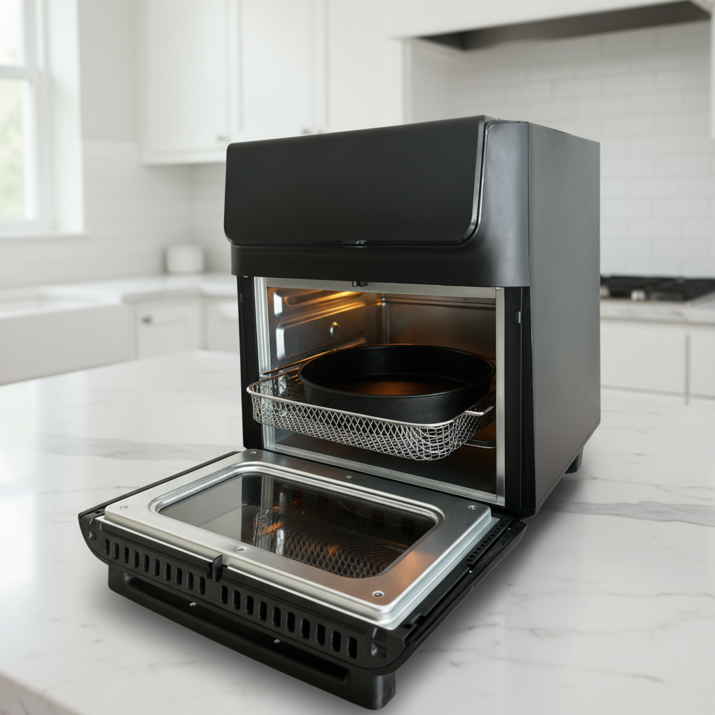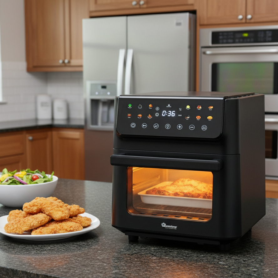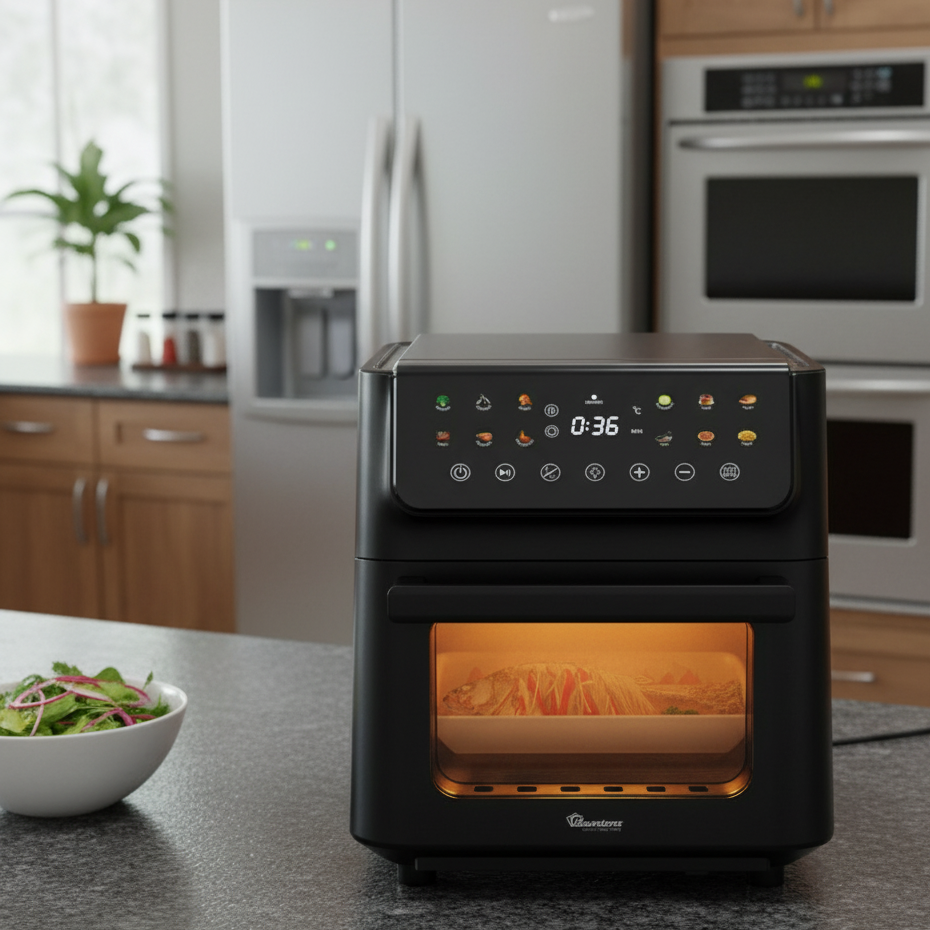 Revolutionize your home cooking with the Ramtons 12L Digital Air Fryer Oven. Combining powerful performance with a sleek digital touch display, this multifunctional air fryer makes healthy cooking effortless and efficient. With a large 12-liter capacity and 1800W of power, it’s ideal for preparing family-sized meals with little to no oil. Enjoy perfectly cooked results using 12 smart preset programs, while the upper heating tubes ensure even cooking without flipping. Its hygienic, easy-to-clean design includes a removable door and hardware liner, making post-meal cleanup quick and simple.