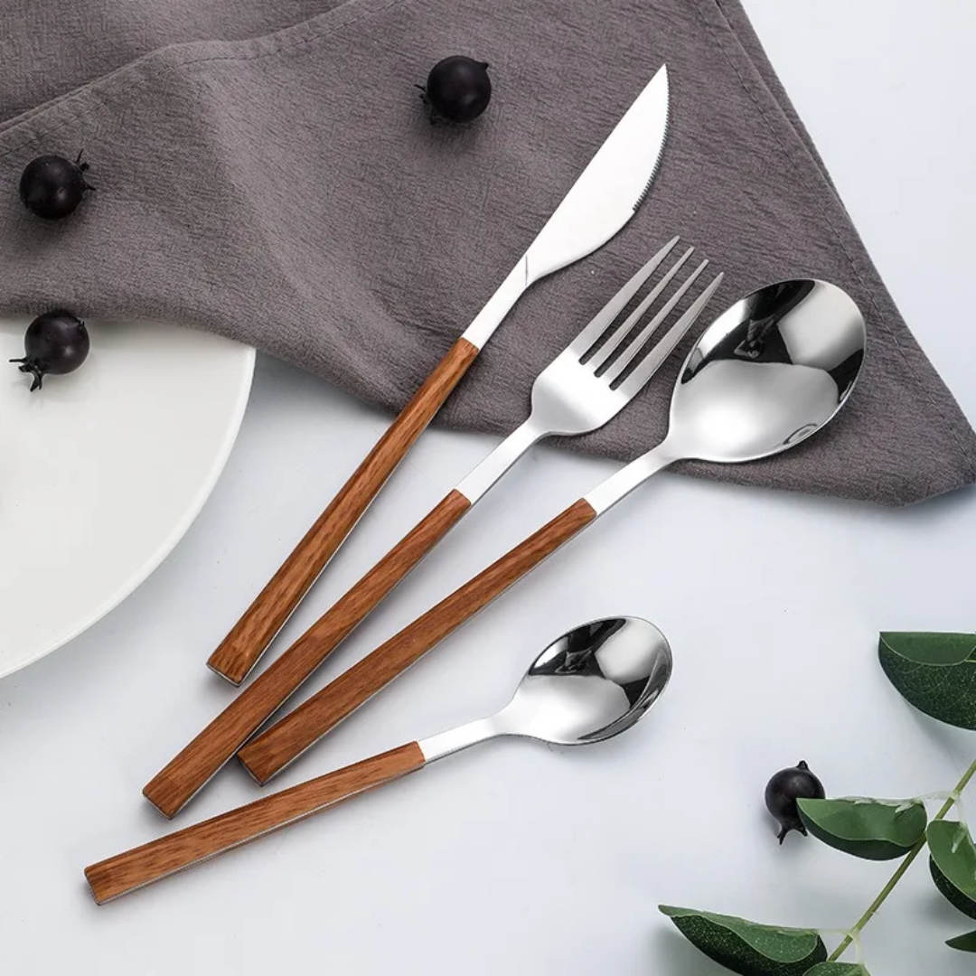 24pc Stainless Steel Cutlery Set with Stylish Maroon Handles Durable, Elegant Flatware for Everyday Dining & Special Occasions
