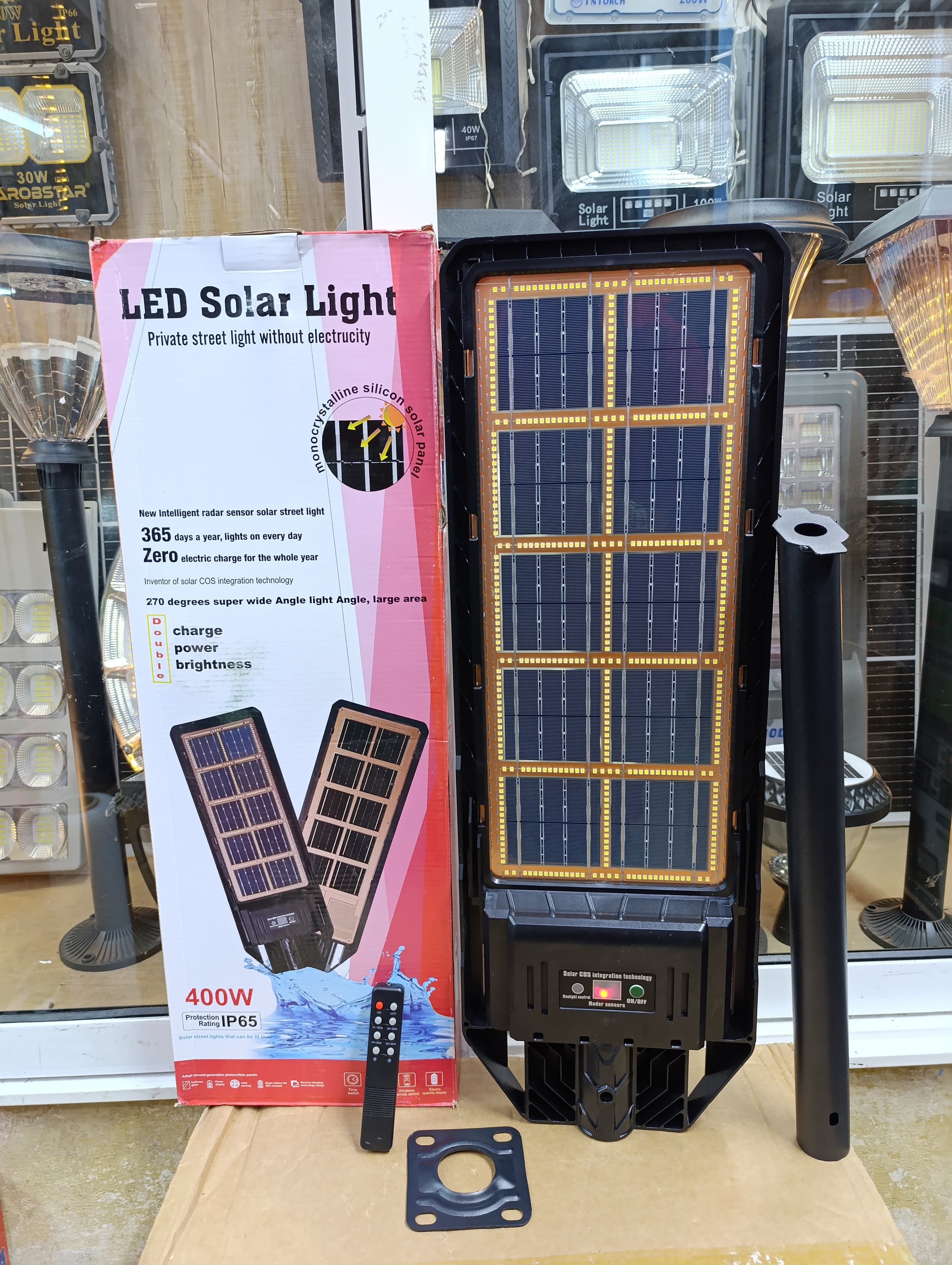 Illuminate streets, pathways, and outdoor areas with the 400W Bifacial Solar Street Light. Featuring high-efficiency bifacial solar panels, it captures sunlight from both sides for faster charging and longer illumination. This energy-saving light provides bright, wide-angle coverage and operates automatically from dusk to dawn. Its durable, weather-resistant design makes it ideal for streets, compounds, gardens, and other outdoor spaces.