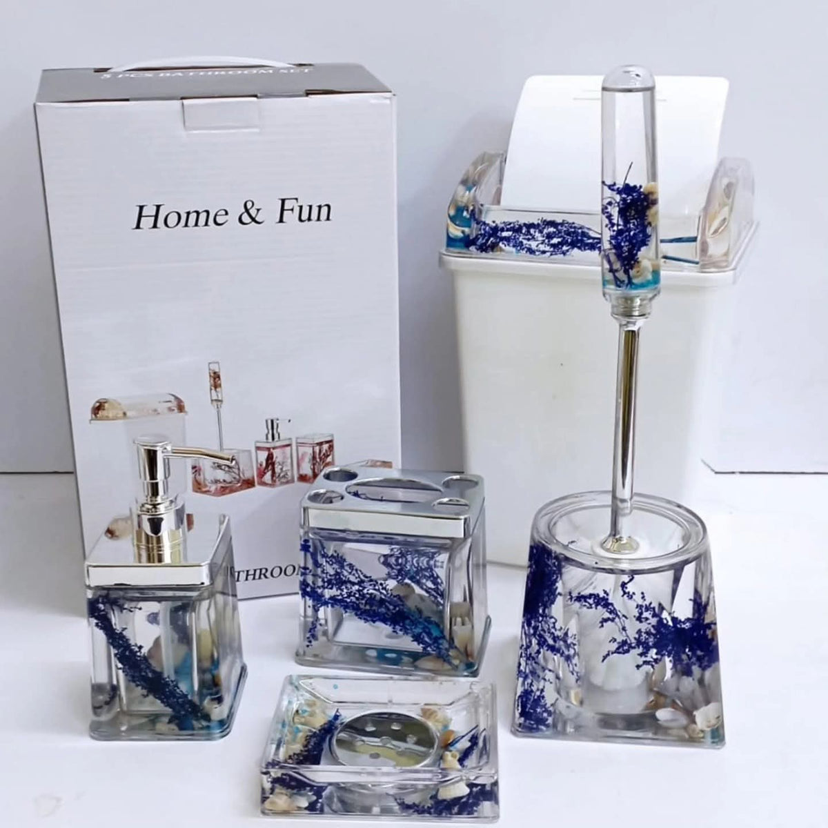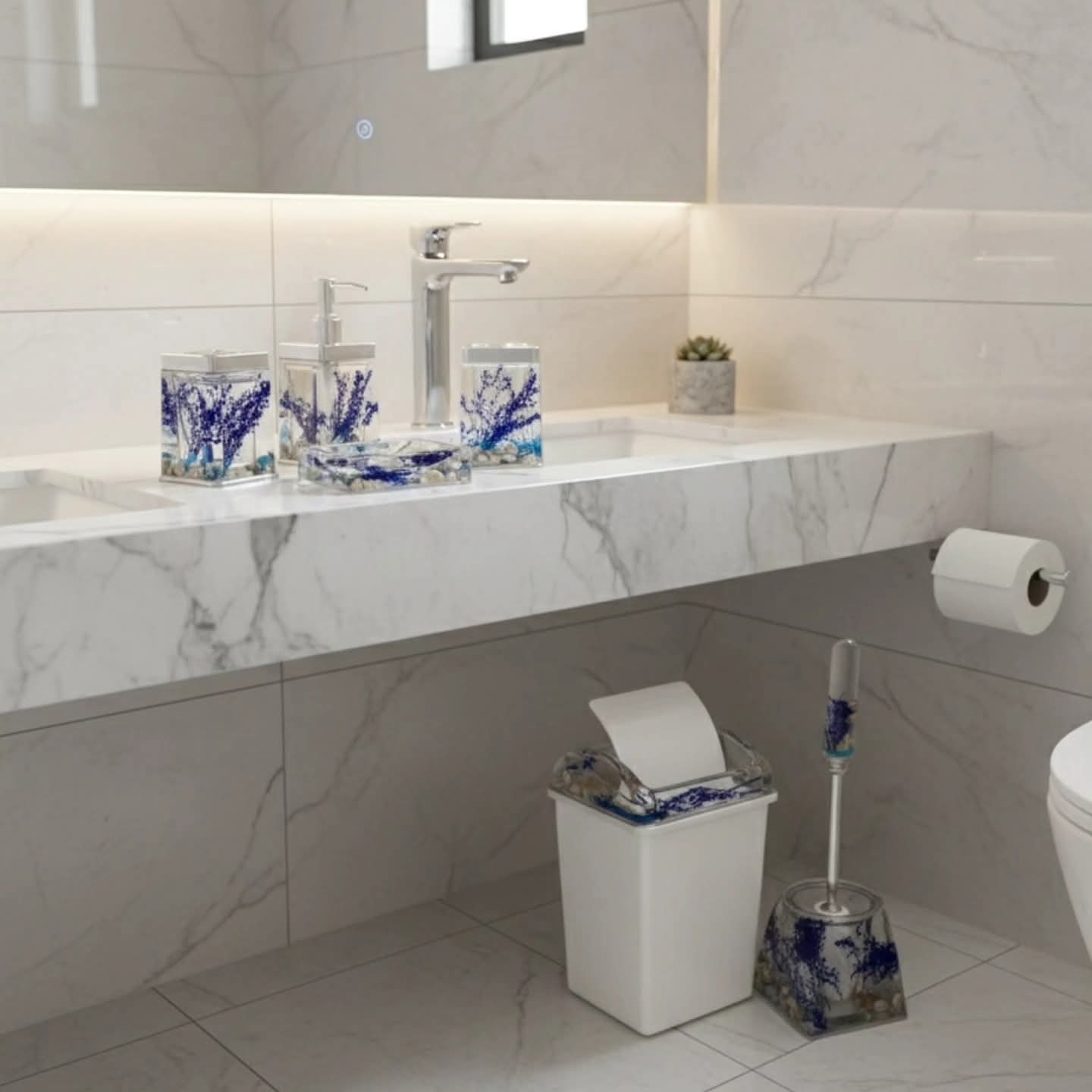 Upgrade your bathroom with this elegant 5-piece water shell flower bathroom accessories set. Made from durable acrylic in a stylish blue finish, it combines functionality and aesthetics to keep your space organized and beautiful. Perfect for everyday use or gifting.