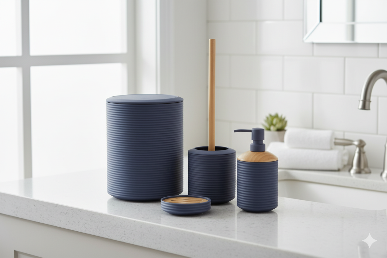 Upgrade your bathroom with this elegant 6-piece ruffled accessories set made from high-quality, eco-friendly PP material. Designed to bring both style and organization to your space. Available in black, white, beige, and grey.