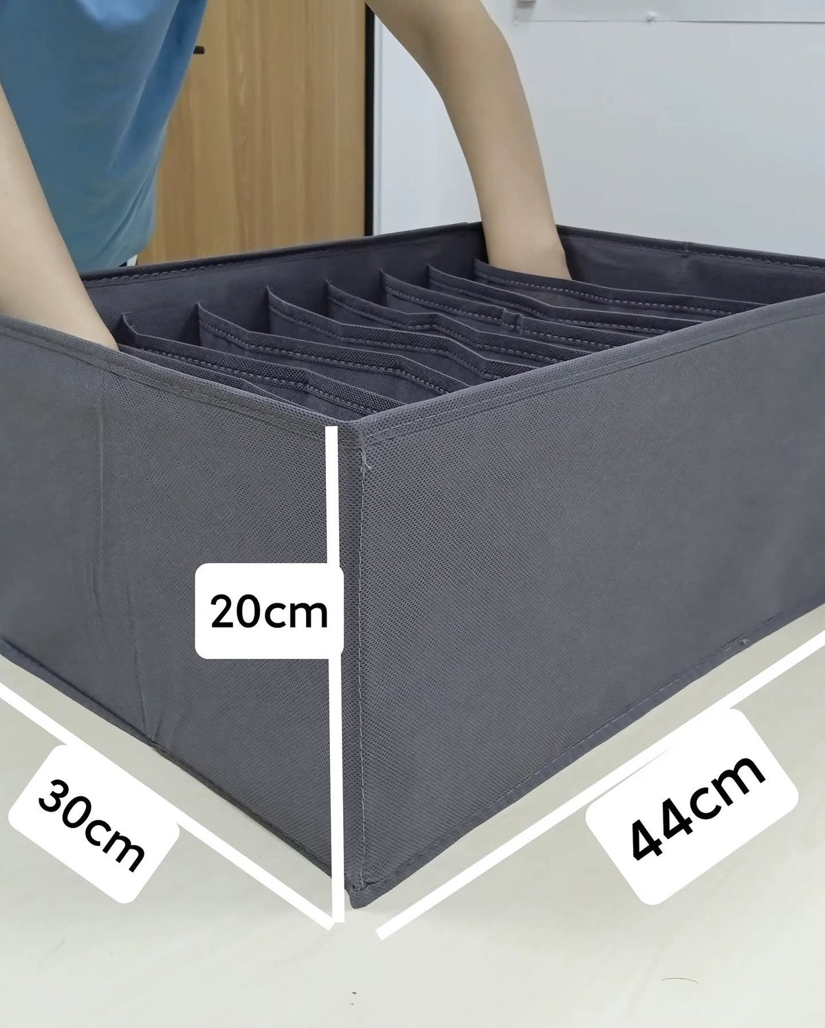 Keep your wardrobe tidy and accessible with this 7-grid large-capacity storage organizer. Made from high-quality, easy-to-clean fabric, it features sturdy handles and a collapsible design for convenient storage. Perfect for organizing clothes, undergarments, and accessories neatly on shelves or in closets.