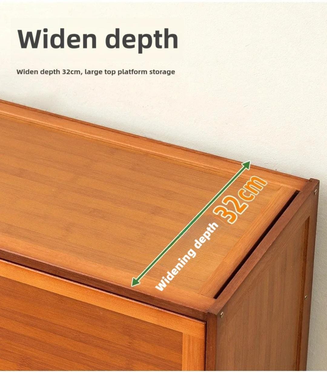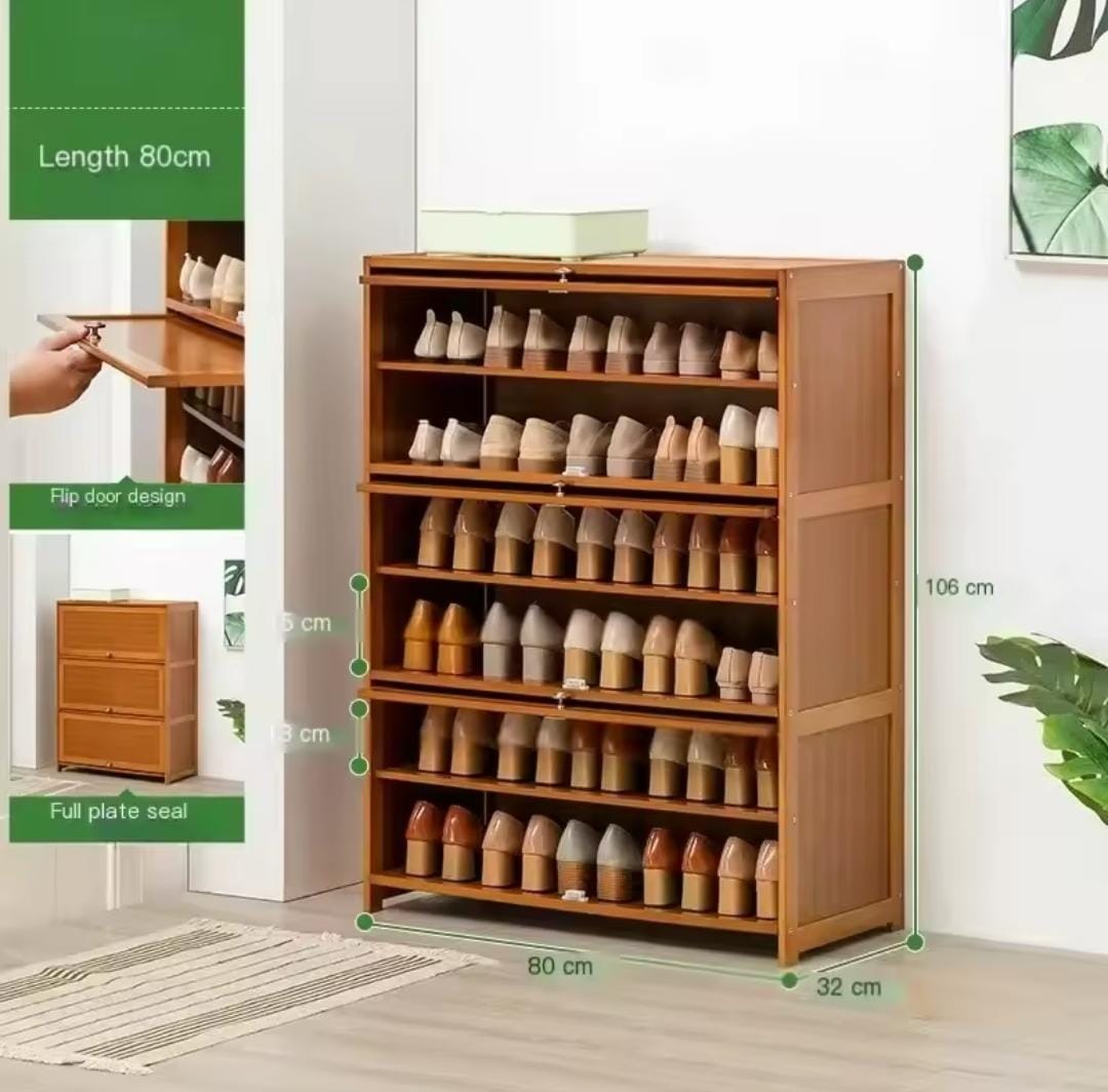 Add natural charm and smart organization to your home with this Flip Side Bamboo Shoe Cabinet. Made from durable, eco-friendly bamboo, it offers multiple tiers for storing shoes, books, or household items. With its foldable, dust-resistant design, this cabinet combines beauty, function, and sustainability perfect for any space.