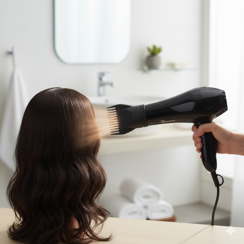 • Hold the dryer about 6 inches from your hair while moving continuously