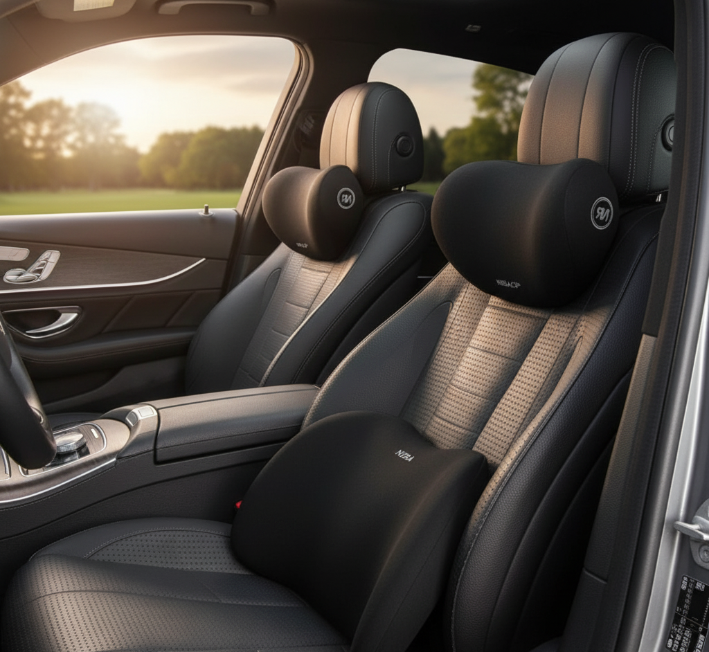 Enjoy ultimate comfort on the road with our High-Quality Memory Foam Car Neck & Back Support Pillow. Designed with breathable materials and ergonomic support, it relieves pressure and enhances posture during long drives. Suitable for all car seats.