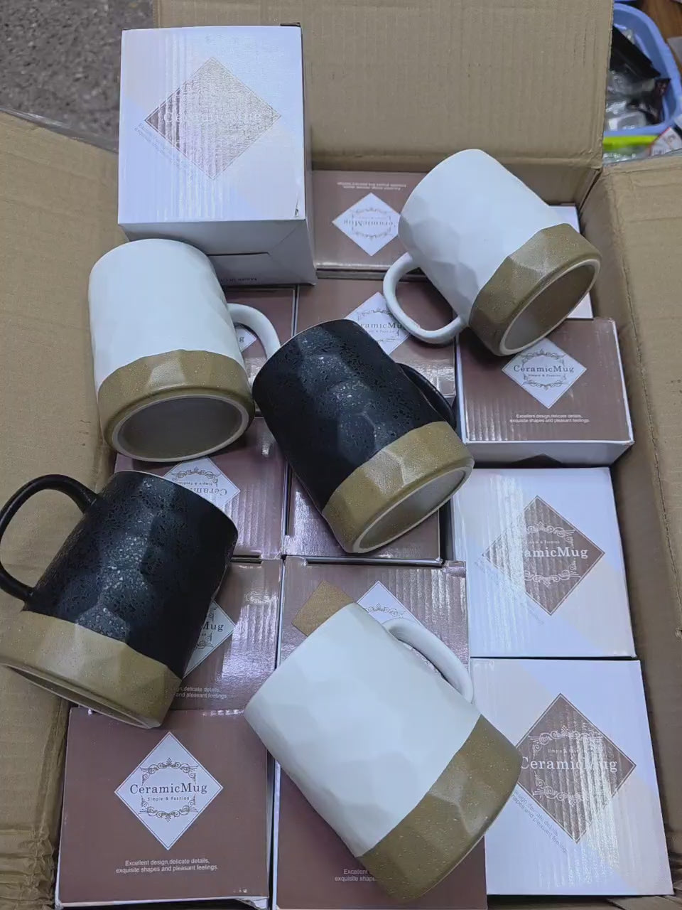 Double Glaze Retro Nordic stripped Matte Ceramic Coffee Mugs 6pcs