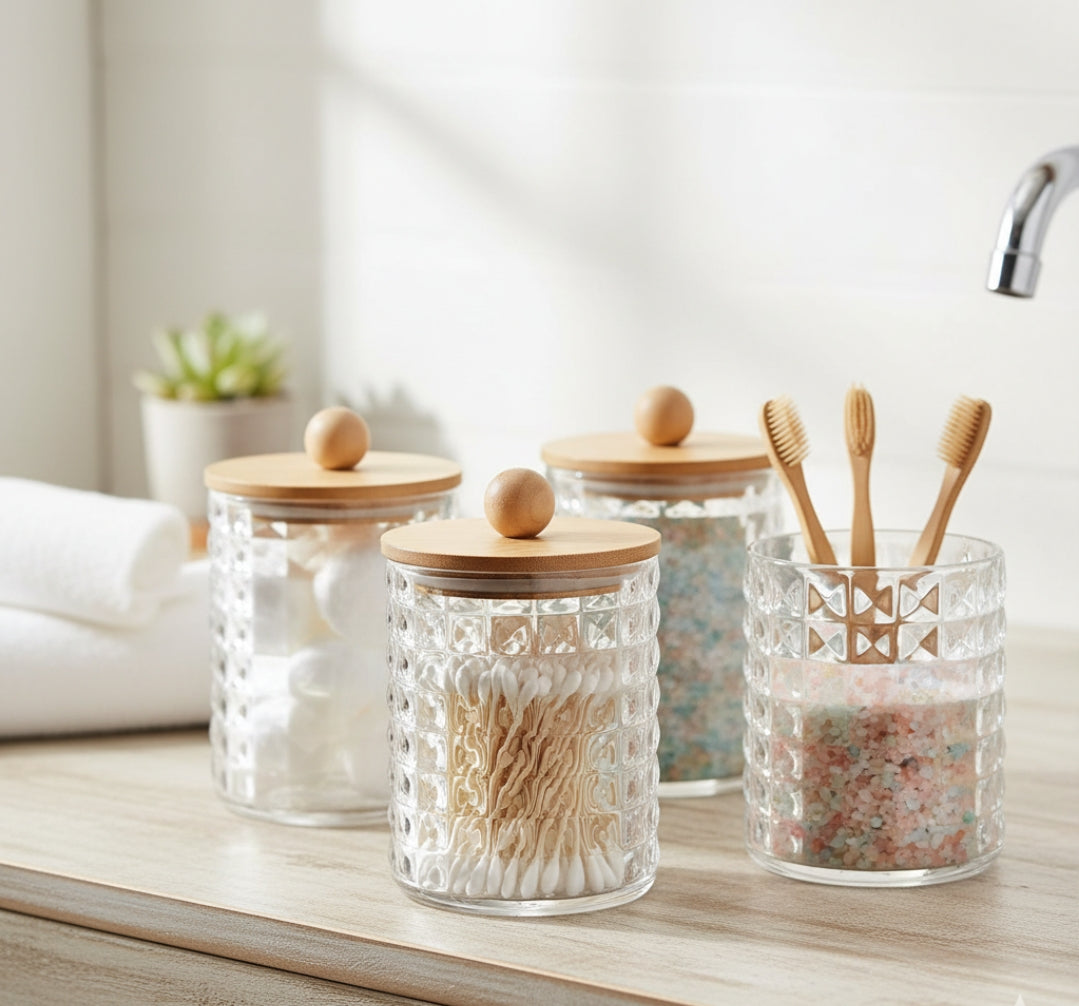 Add a touch of elegance to your space with this Diamond Shape Acrylic Organizer. Perfect for storing earbuds, jewelry, cotton swabs, or other small items. The clear acrylic body and natural bamboo lid blend beauty with practicality keeping your essentials neat and stylishly displayed.