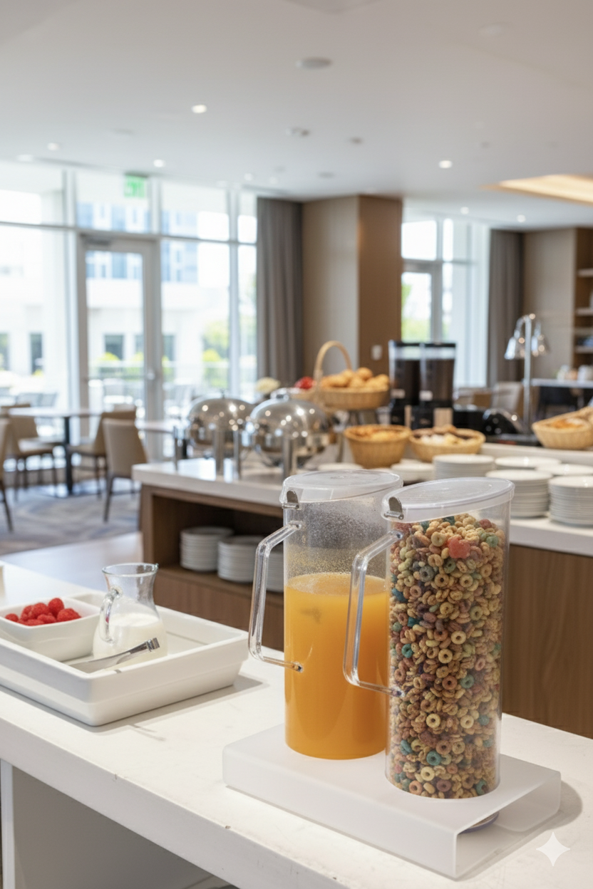 Domestic Juice & Cereal Dispenser Set with Stand – Durable Polycarbonate for Home, Hotels & Events