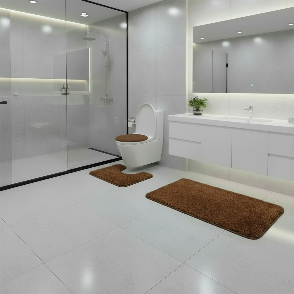 Transform your bathroom into a cozy and inviting space with this 3-in-1 Fluffy Toilet Mat Set. Designed for comfort, warmth, and style, the set includes a contour rug, seat cover, and floor mat — all made with soft, plush material and a durable non-slip backing for safety. Easy to clean and maintain, it keeps your bathroom neat, warm, and family-friendly.