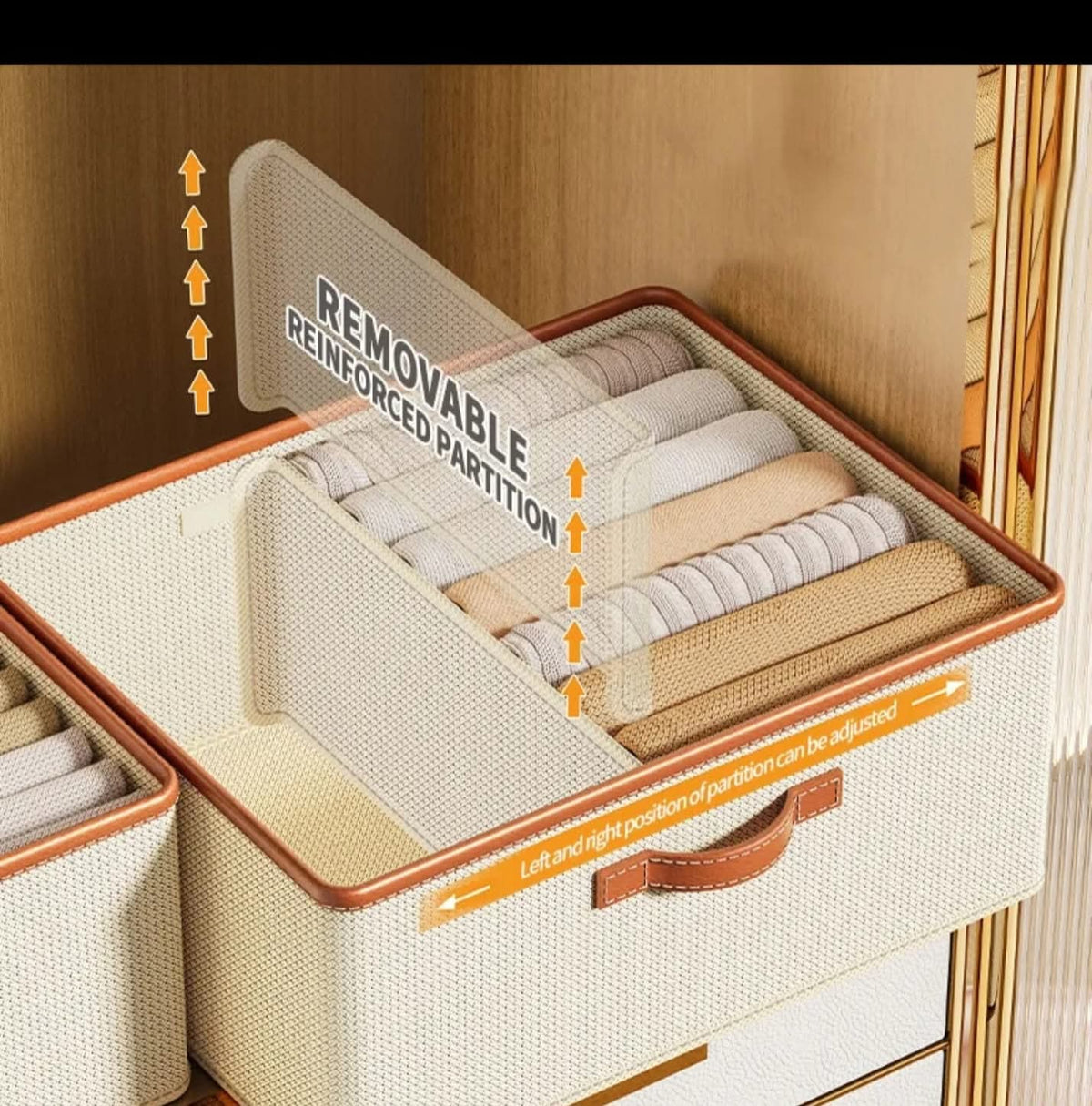 Keep your wardrobe neat and clutter-free with this foldable closet organizer. Made from heavy-duty fabric with a thickened bottom board, it’s perfect for storing clothes, linens, and accessories. The removable dividers make organizing effortless while saving space in your closet.