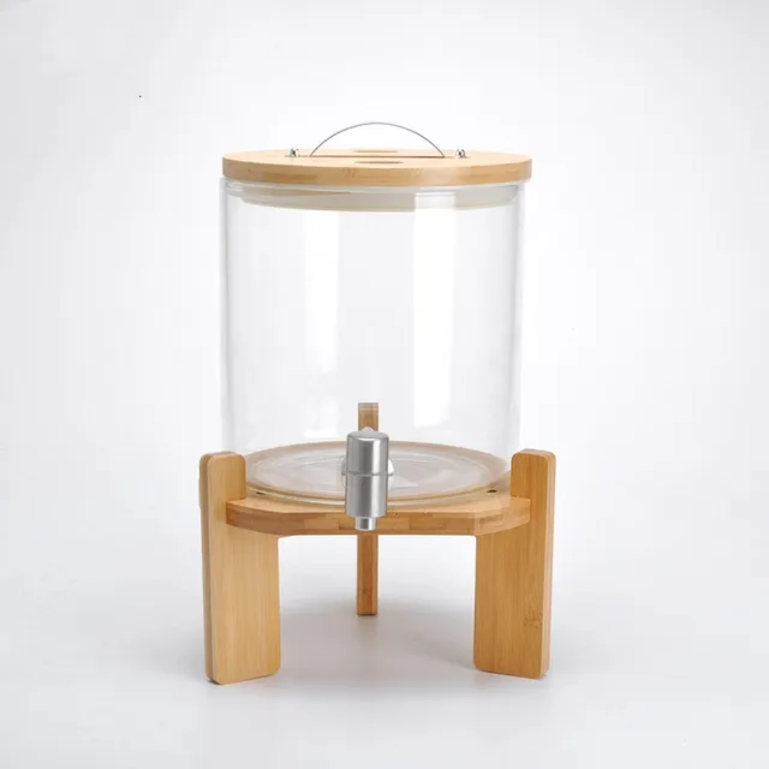 Glass Juice and Beverage Dispenser with Bamboo Stand