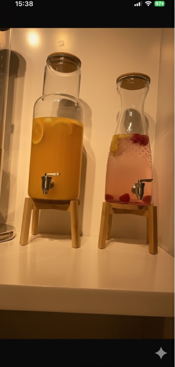 Elevate your beverage presentation with this 4.5-litre glass juice dispenser, designed for hotels, restaurants, cafes, and events. Crafted from premium pure glass with a bamboo lid and stand, it combines elegance with functionality. Perfect for serving fresh juices at breakfast buffets or catering setups, this dispenser is durable, eco-friendly, and easy to clean—offering a stylish way to keep drinks fresh and accessible.