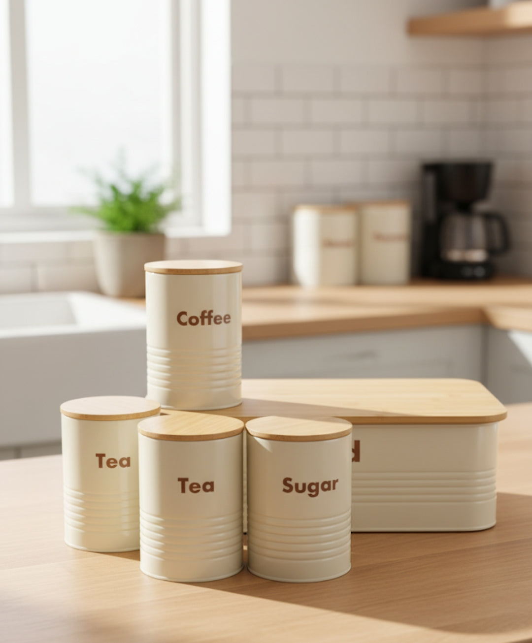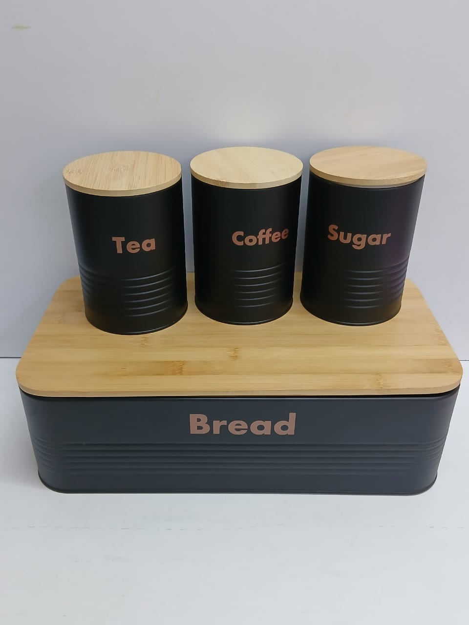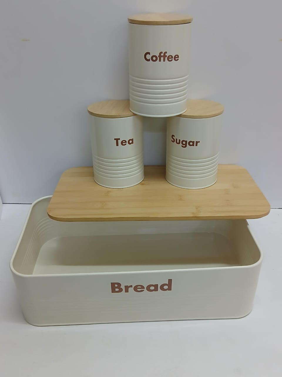 Keep your bread fresh and your countertop stylish with this sleek metallic bread bin. Designed with a natural wooden base and smooth lid, it combines modern elegance with practical storage for your baked goods.