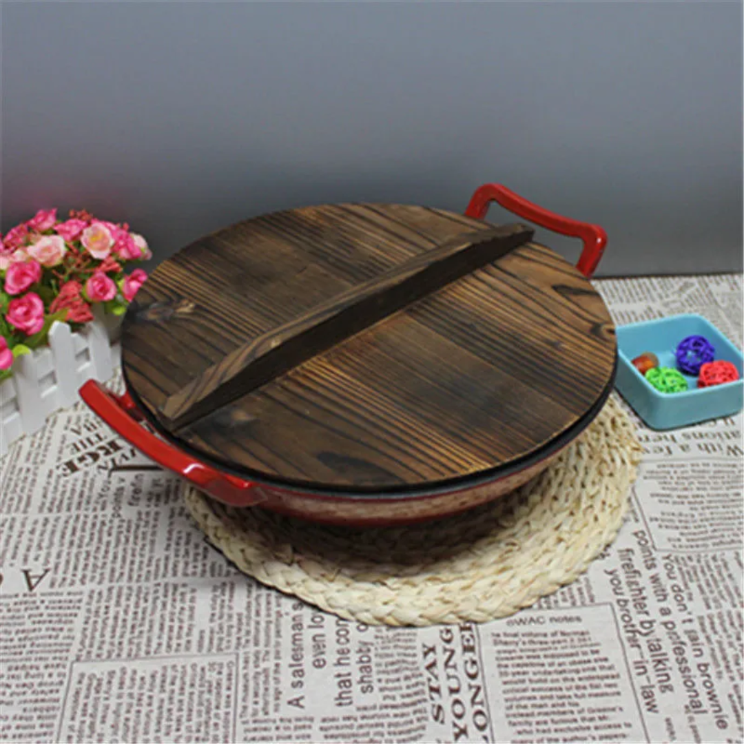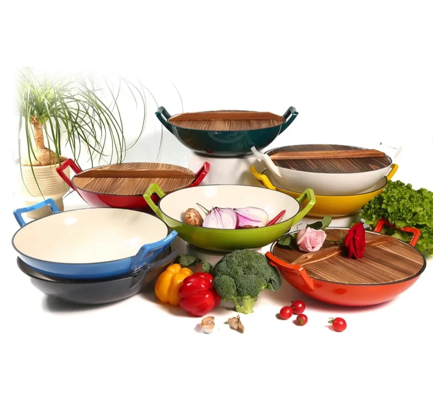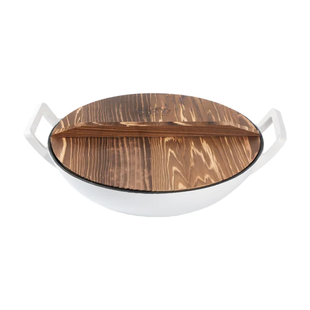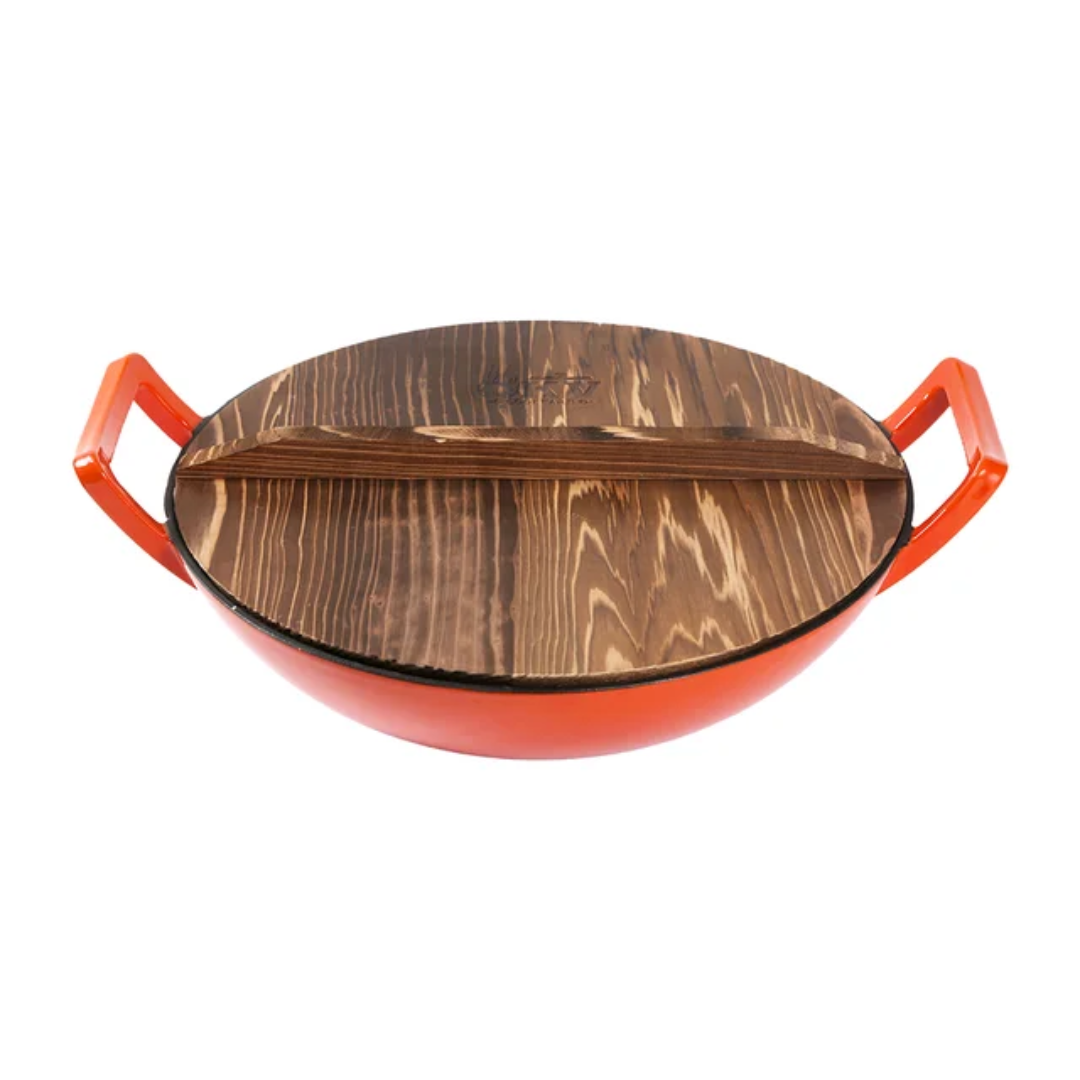 Non-Stick Enameled Cast Iron Wok Pan with Wooden Lid