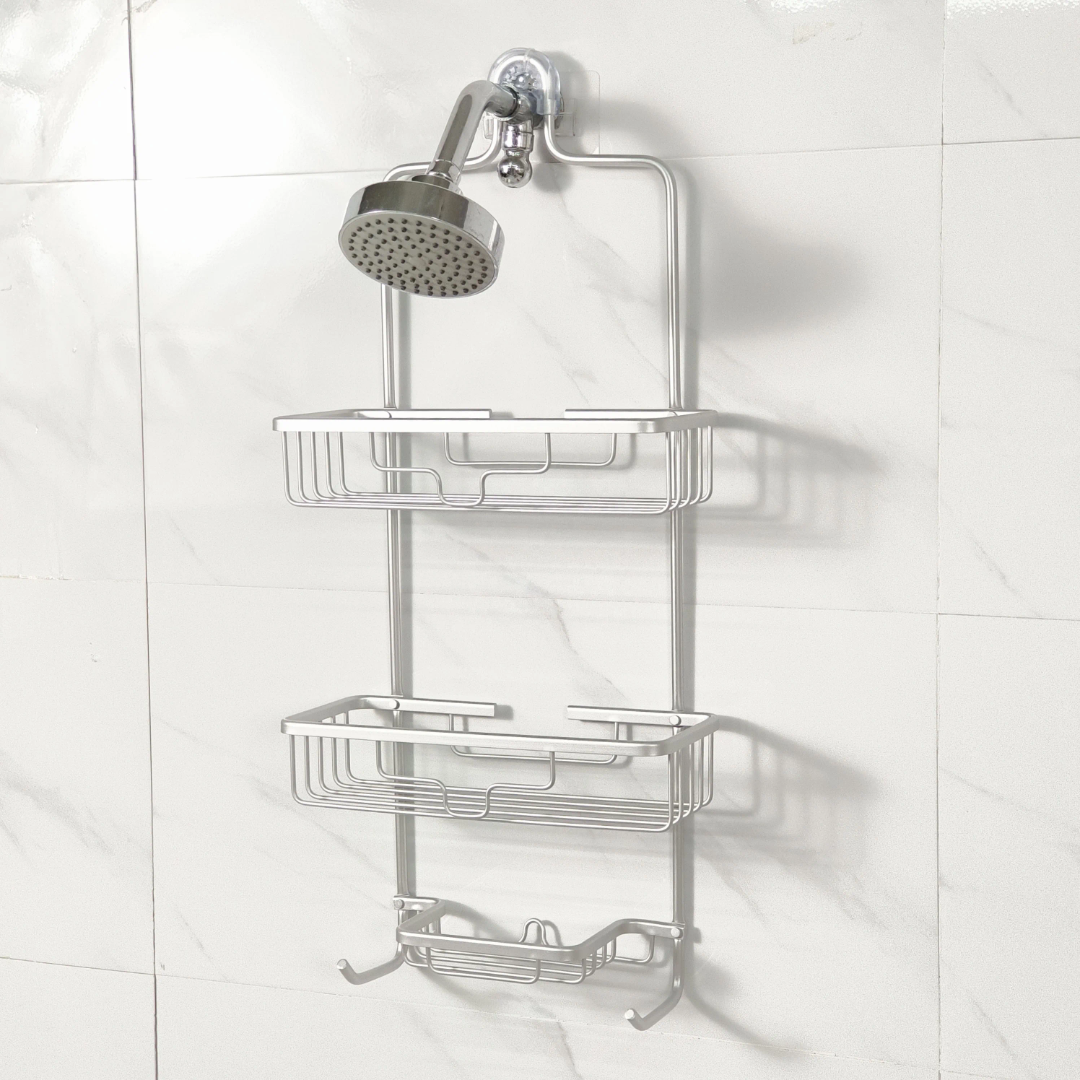 Organize your bathroom essentials with this sleek aluminium partitioned shower caddy. Designed for wall hanging, it provides convenient storage for soaps, shampoos, and accessories while keeping your space neat and stylish.