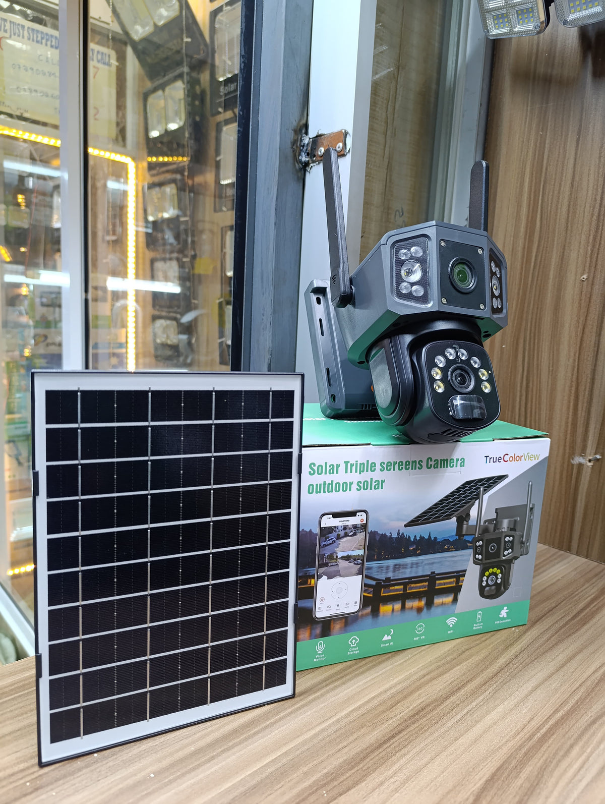 Upgrade your security system with the Triple Screen Dual Lens Solar Camera, built for all-day, all-weather surveillance. Equipped with dual lenses for wide and detailed coverage, triple viewing screens, and solar power for continuous operation — it ensures reliable protection without electricity bills. Ideal for homes, compounds, gates, and business premises.