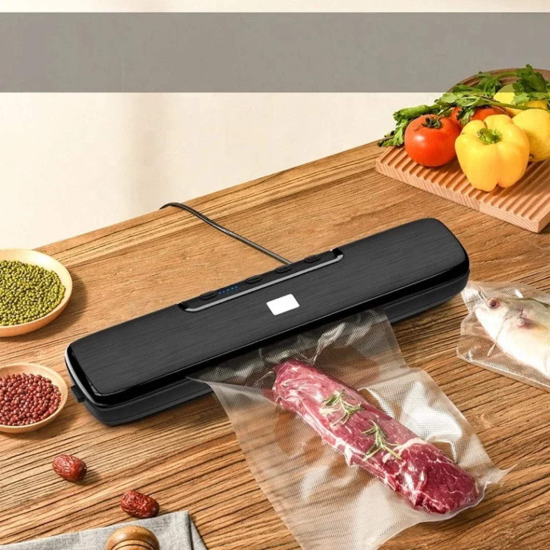 Keep your food fresh up to 5x longer with our vacuum sealer, perfect for sealing most types of storage bags. Designed for convenience and durability, it helps preserve flavor, prevent freezer burn, and reduce food waste. Ideal for dry or moist foods from snacks to meats. A must-have kitchen tool for smart storage!