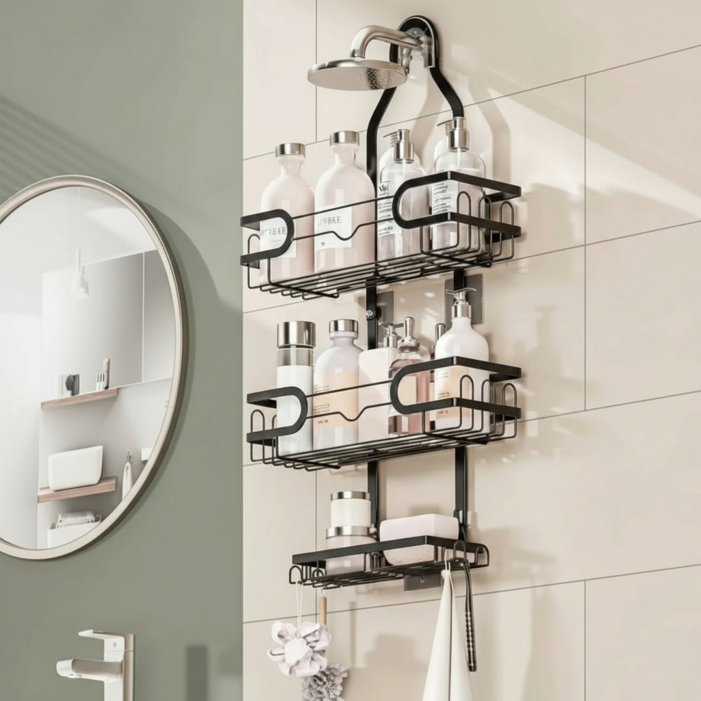 Keep your bathroom neat and stylish with this durable wall-mounted metal shelf. Designed for smart organization, it features multiple tiers for your essentials, a quick-drain system to prevent water buildup, and an easy installation method that saves space while adding a touch of modern elegance. Perfect for storing soaps, shampoos, and accessories, it helps maintain a clean and clutter-free space.